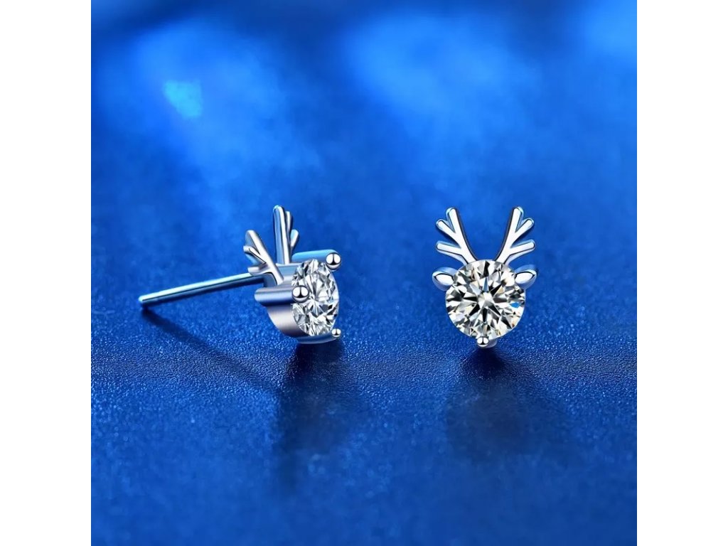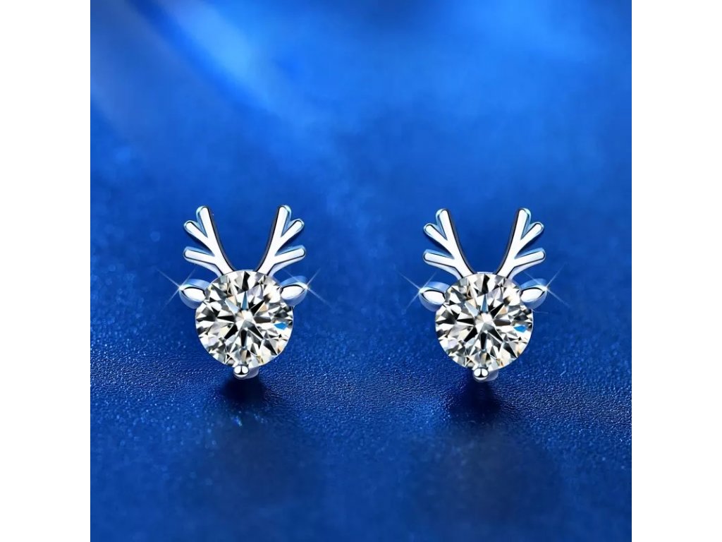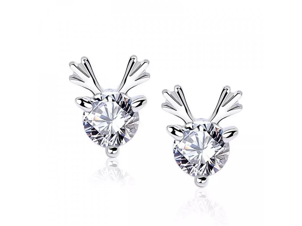 - Stříbrné rhodiované peckové náušnice s designem jelena zdobené drahokamem moissanitem. Originální design náušnic, kvalitní zpracování a materiál, ručně dohotovené.