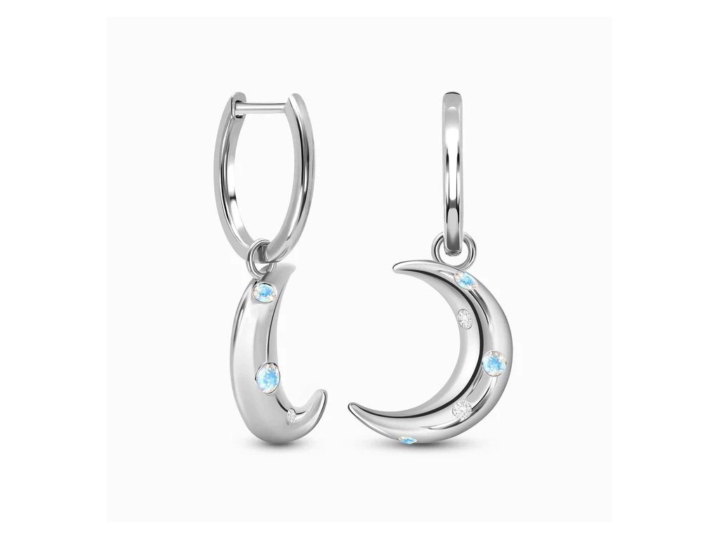 Elenys stříbrné rhodiované náušnice s drahokamy Měsíc