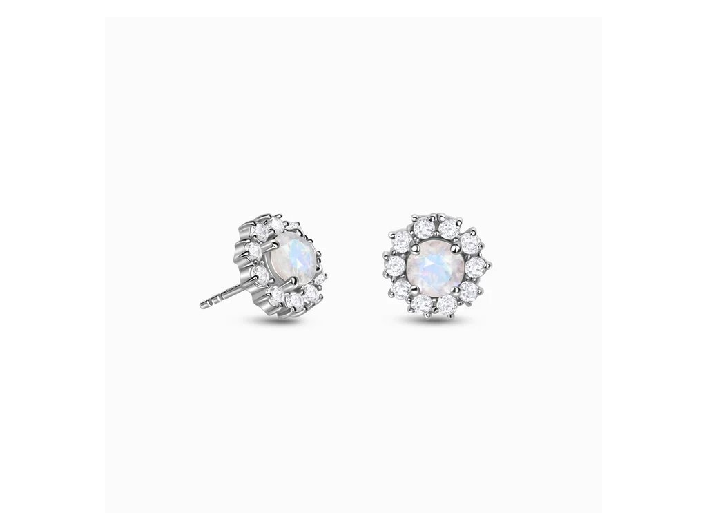 Elenys stříbrné rhodiované náušnice s drahokamy Měsíční květ