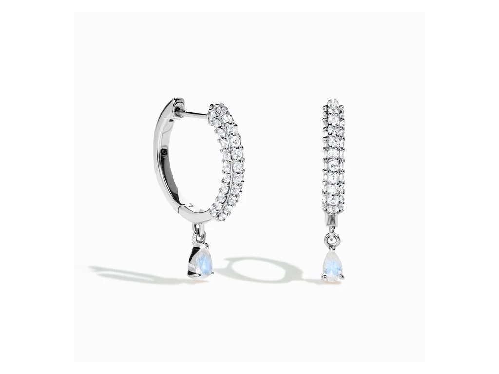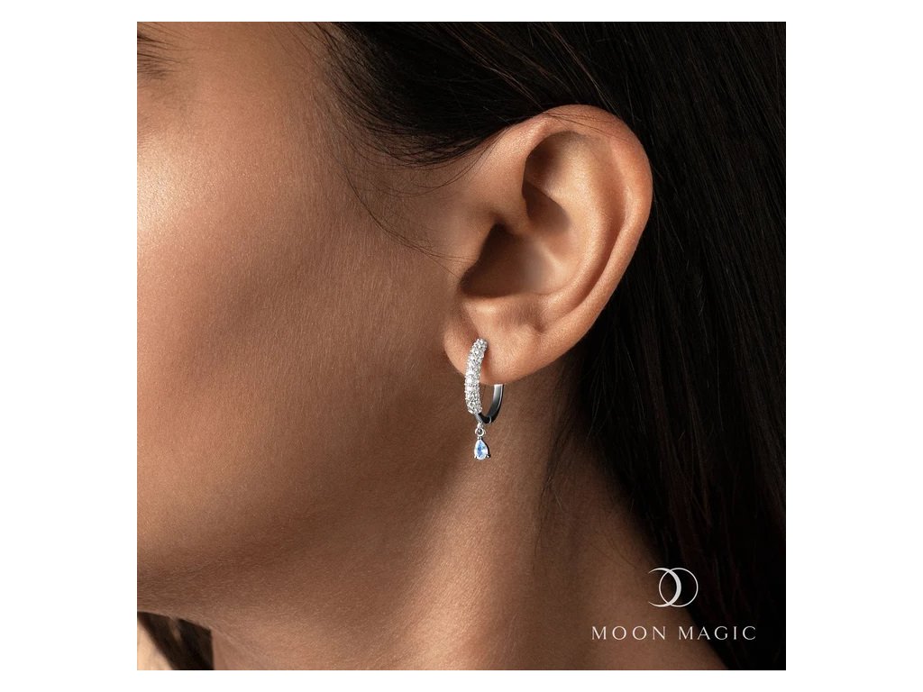 - Luxusní stříbrné rhodiované kruhové náušnice Sympatie obohacené měsíčními duhovými drahokamy Moonstony a čirými třpytivými drahokamy topazy. Originální design náušnic, kvalitní zpracování a materiál, ručně dohotovené.