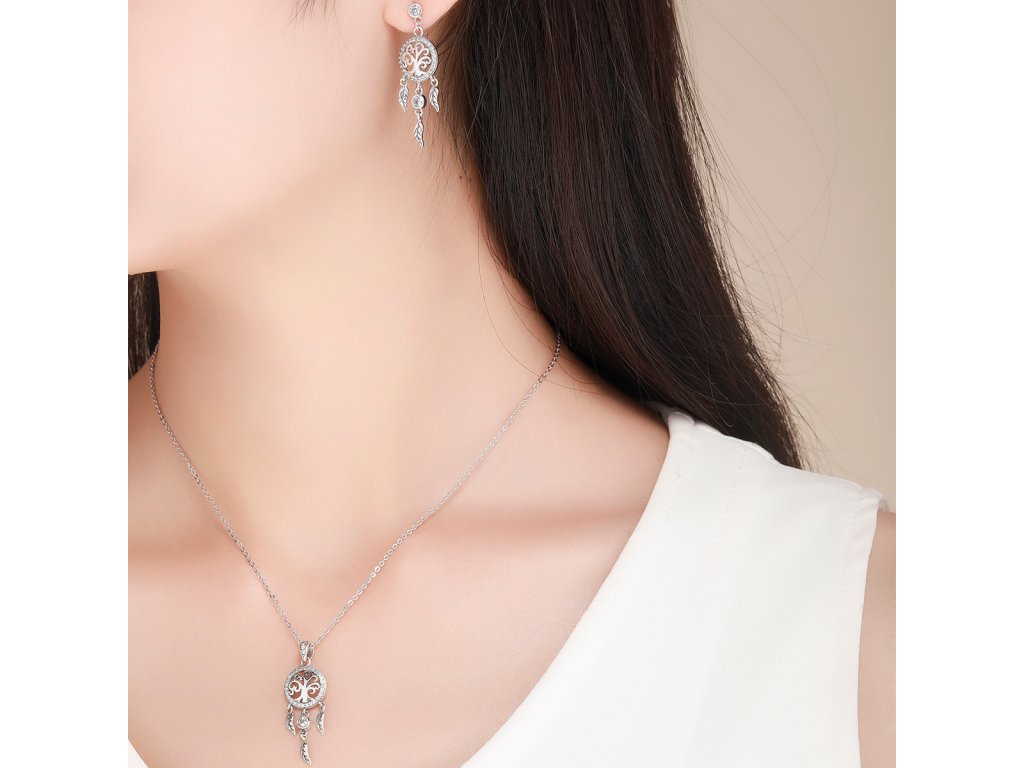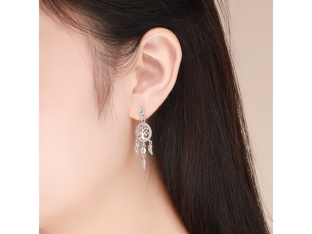 - Stříbrné visací náušnice v designu spirituálního lapače snů s precizním zpracováním. Vyrobené z kvalitního sterlingového stříbra, doplněné o ručně dokončované detaily, které zajišťují jedinečnost každého kusu.