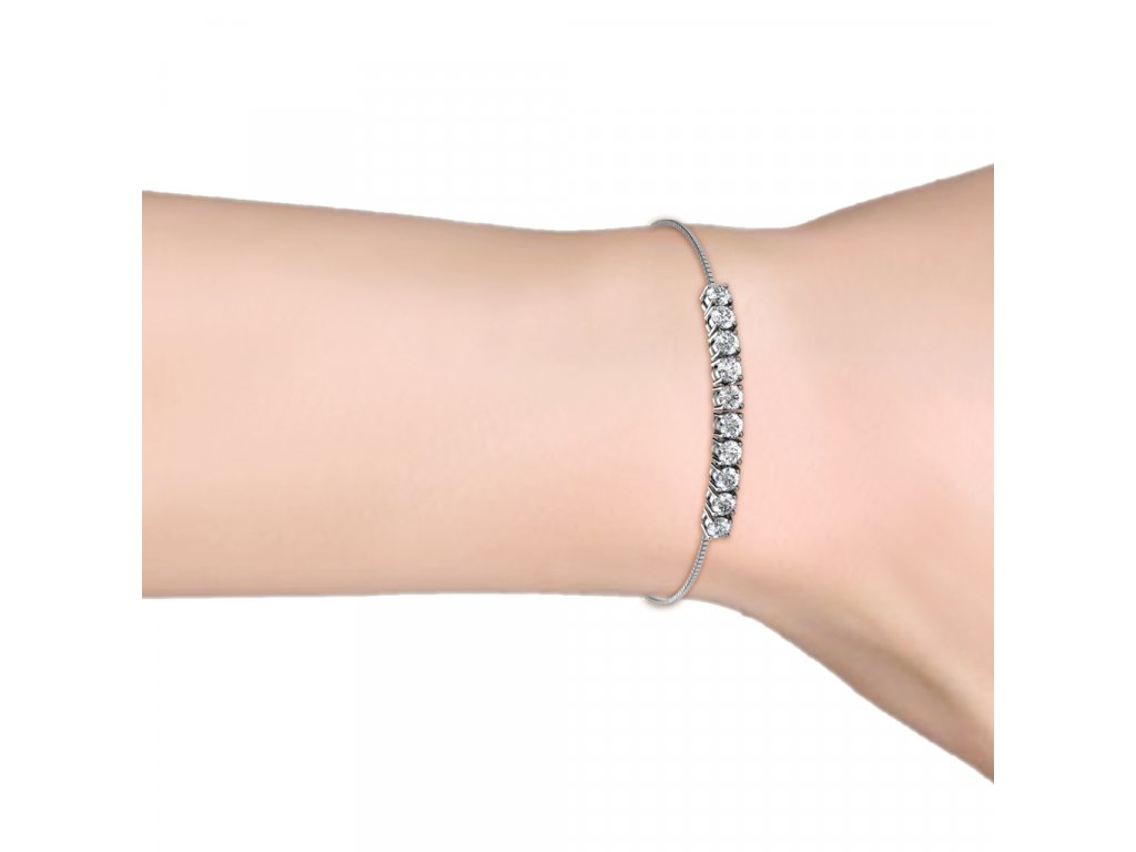 - Stříbrný jemný náramek pozlacený 18k bílým zlatem s krystaly swarovski