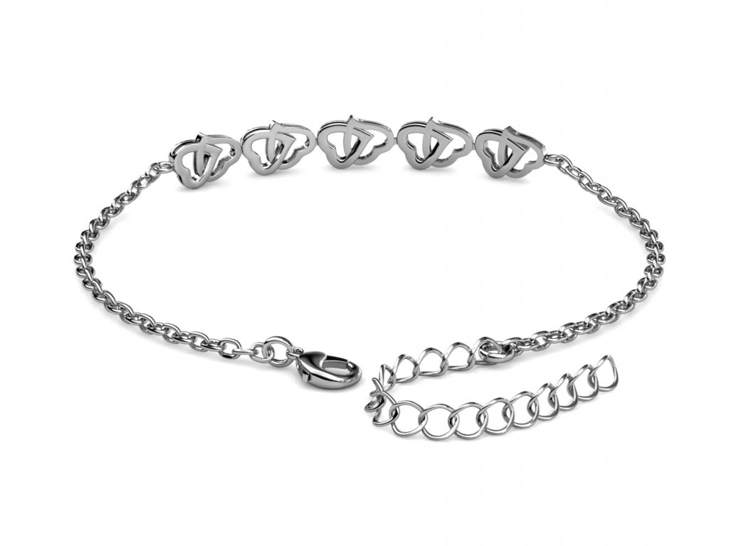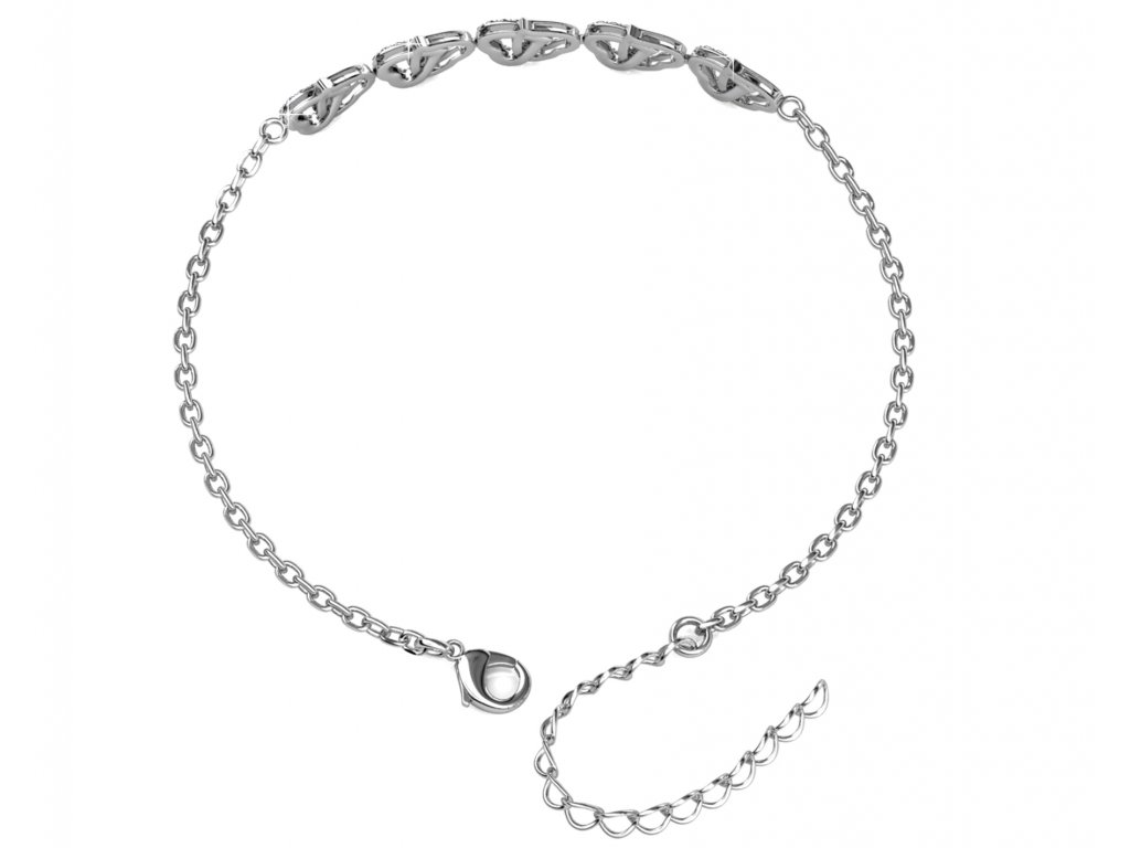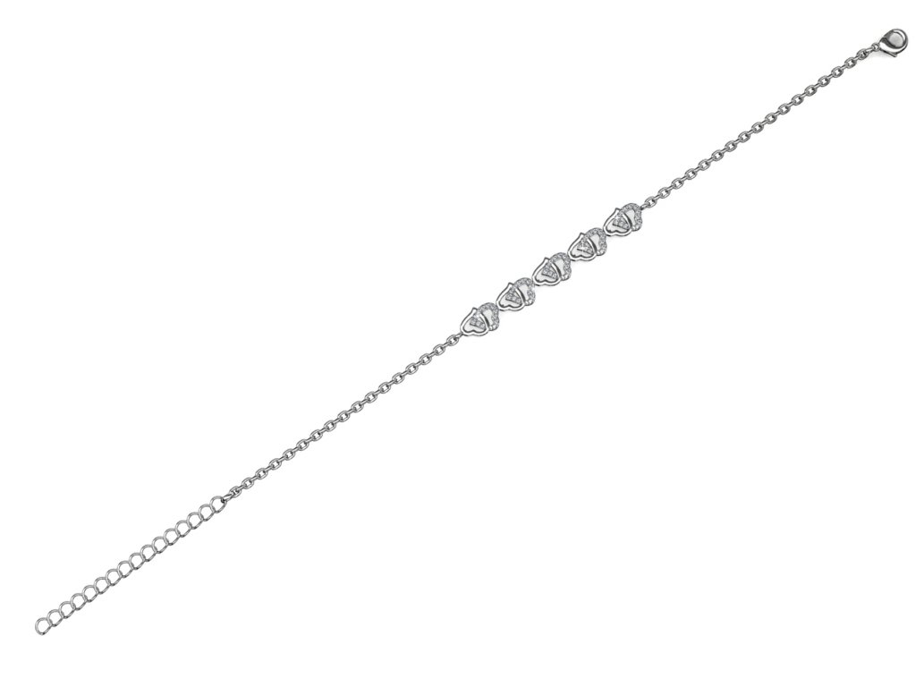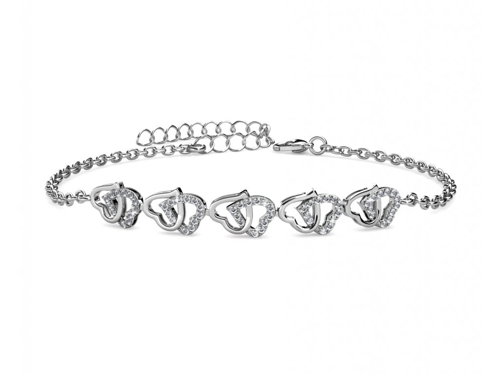 - Jemný srdcový náramek zlacený 18k bílým zlatem s krystaly Swarovski