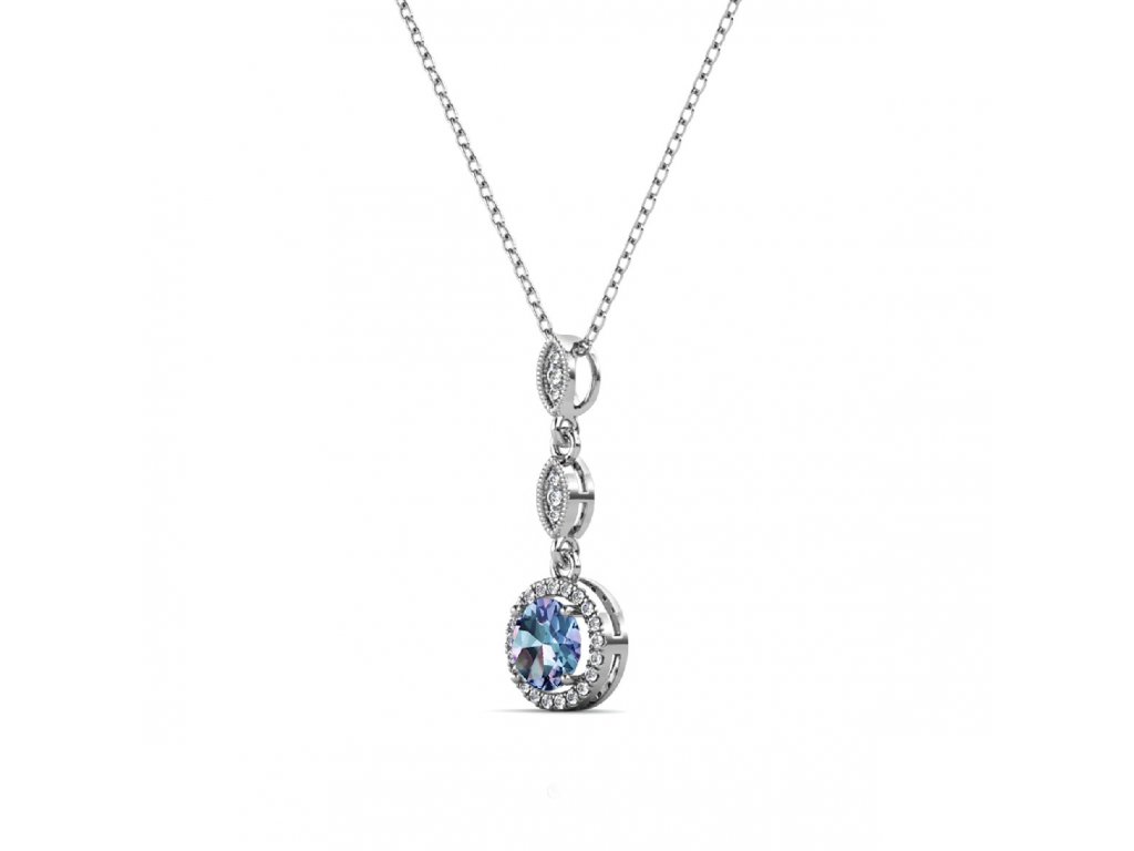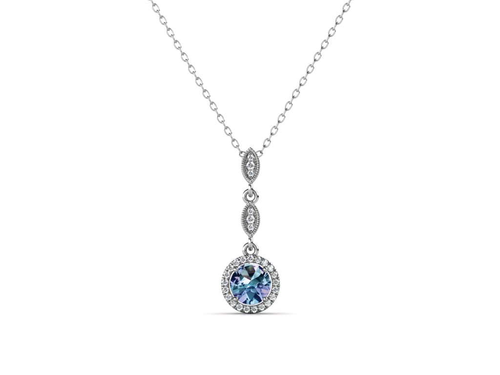 - Luxusní stříbrný náhrdelník pozlacený 18k bílým zlatem s Alexandritem a zirkonem. Originální design náhrdelníku, kvalitní zpracování a materiál, ručně dohotovené.