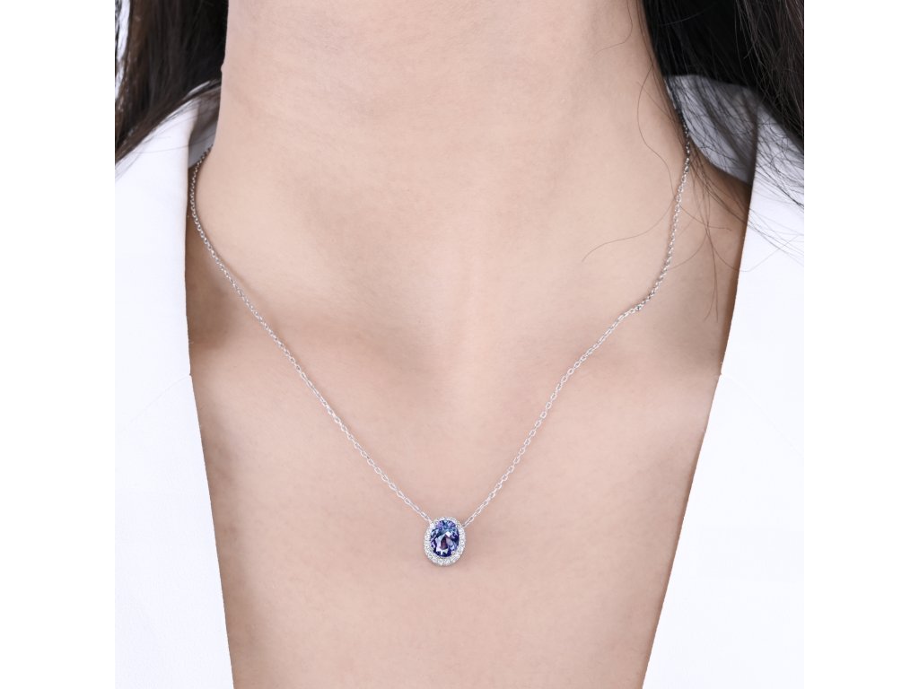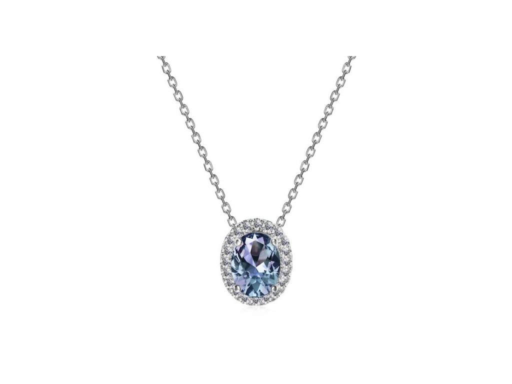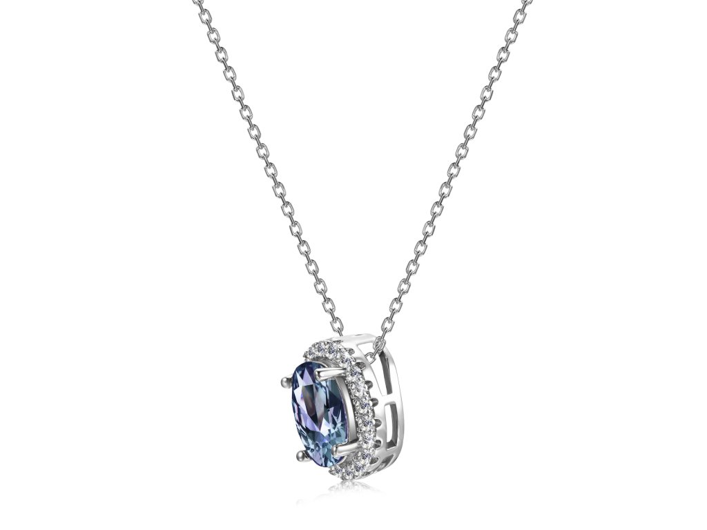 - Luxusní stříbrný náhrdelník pozlacený 18k bílým zlatem s Alexandritem a zirkony. Originální design náhrdelníku, kvalitní zpracování a materiál, ručně dohotovené.