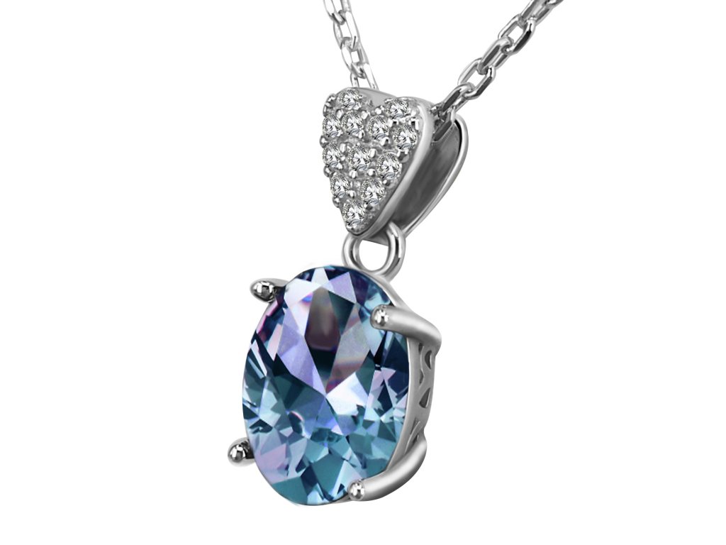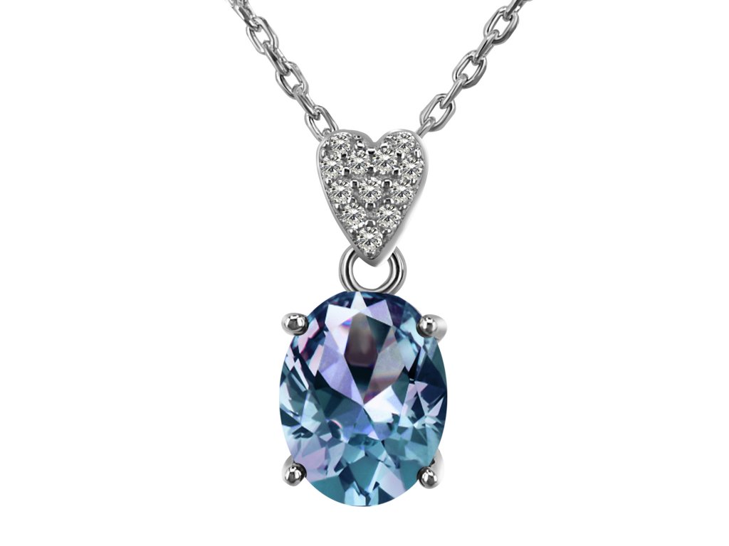 - Luxusní stříbrný náhrdelník pozlacený 18k bílým zlatem s Alexandritem a zirkonem. Originální design náhrdelníku, kvalitní zpracování a materiál, ručně dohotovené.