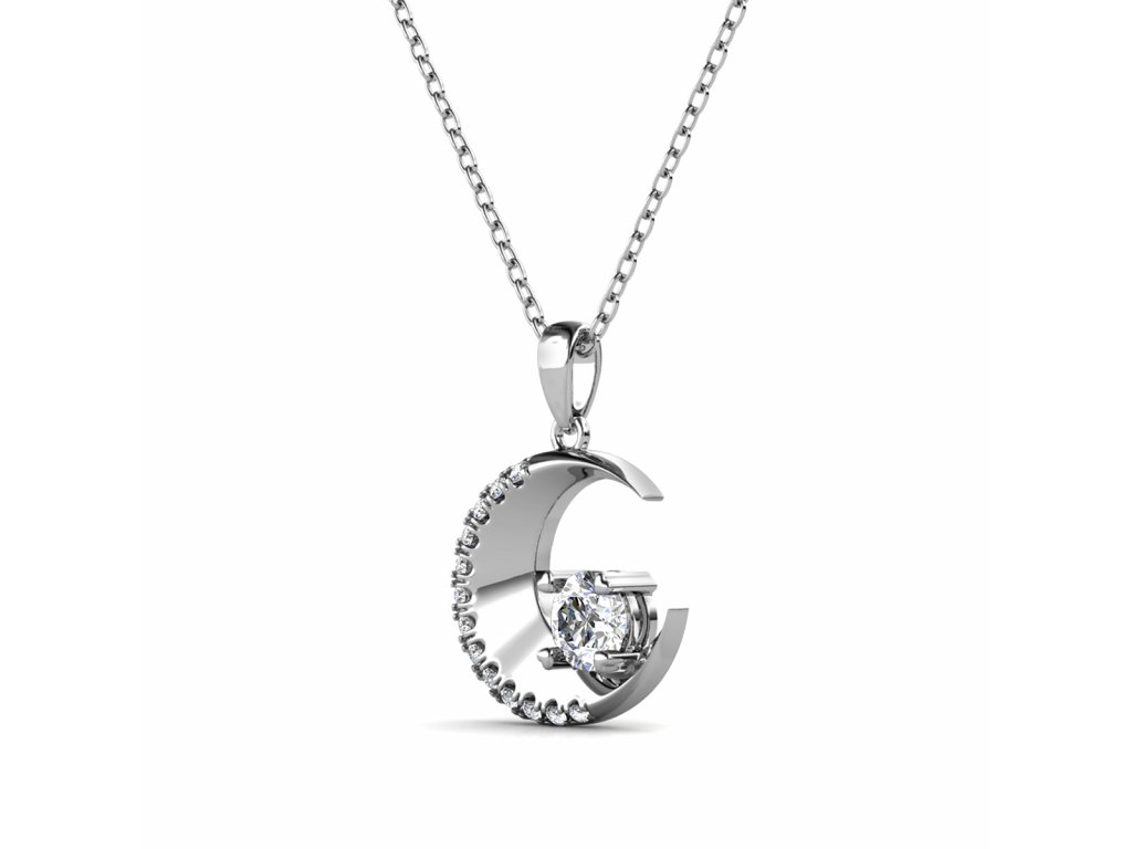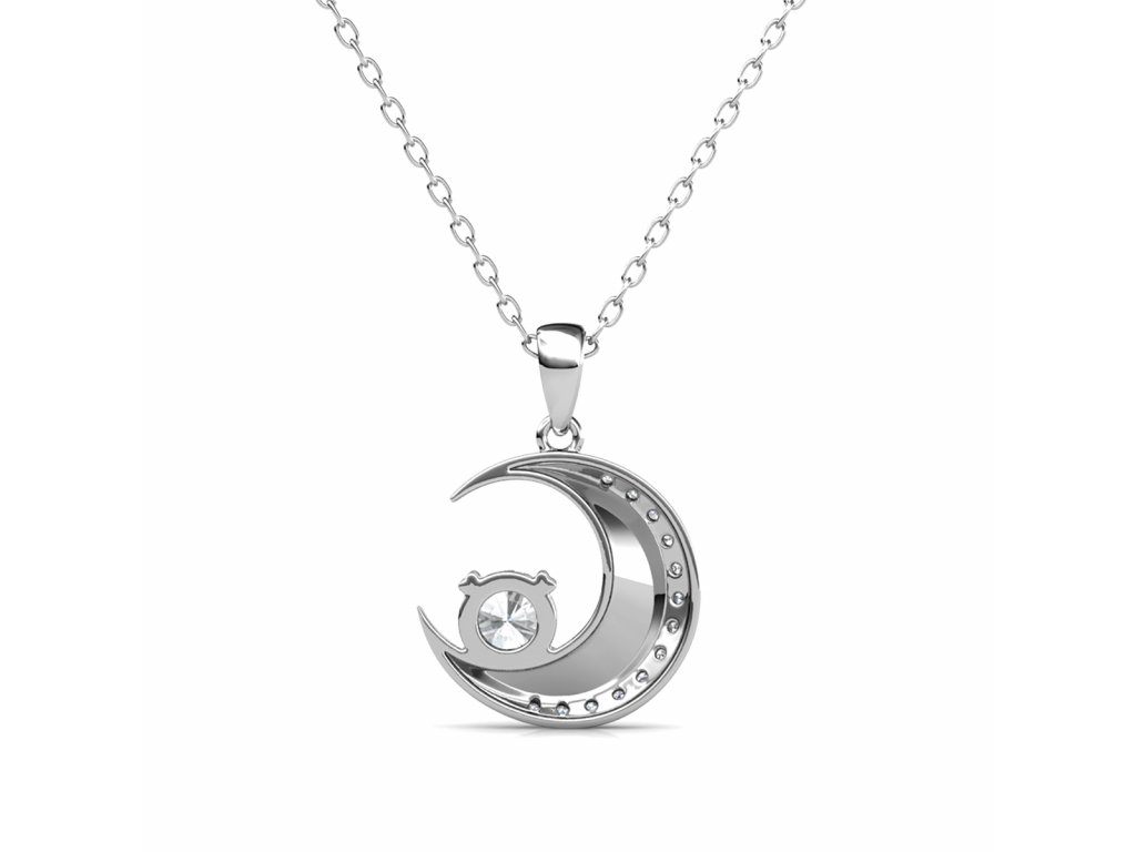 - Náhrdelník zlacený 18K bílým zlatem s přívěskem ve tvaru měsíce, který je zdoben drahokamem moissanitem a nejkvalitnějšími zirkony 5A. Originální design náhrdelníku, kvalitní zpracování a materiál, ručně dohotovené.