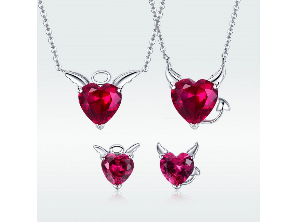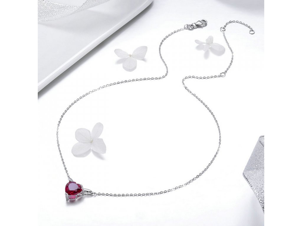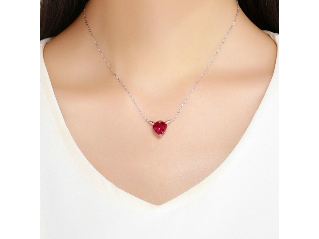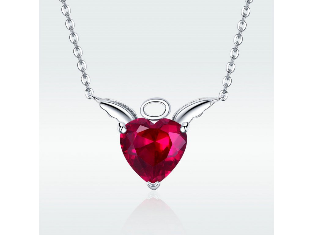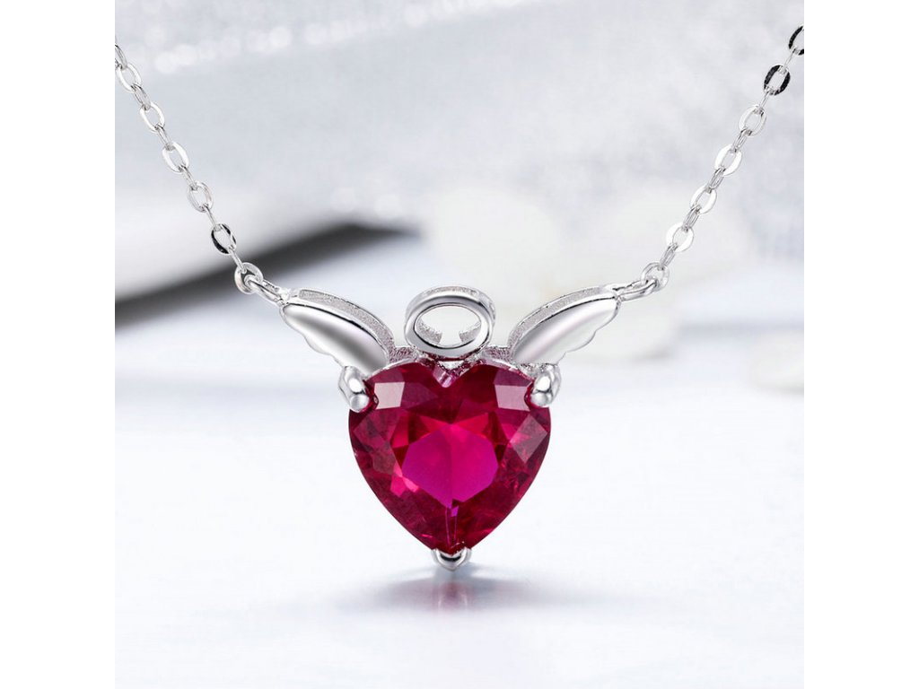 Luxusní stříbrný náhrdelník s přívěskem andílka, kterému dominuje růžovočervené srdce v podobě zirkonu. Originální design náhrdelníku, kvalitní zpracování a materiál, ručně dohotovené.