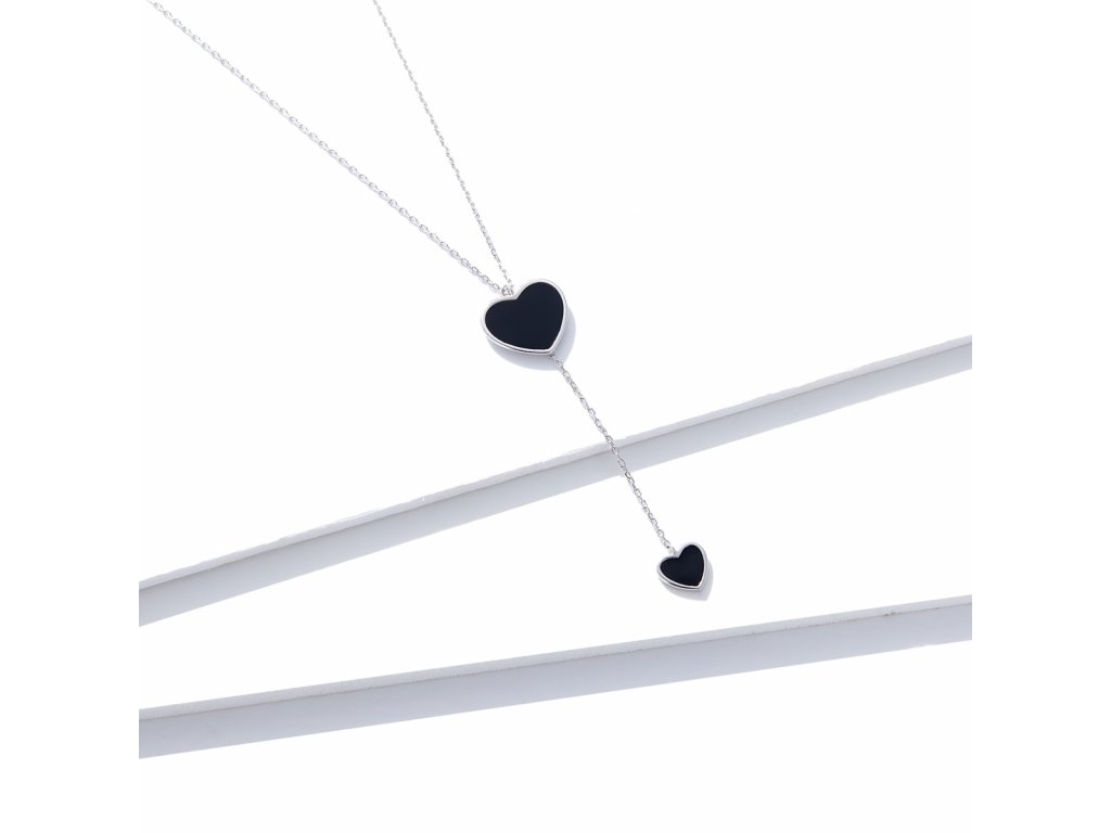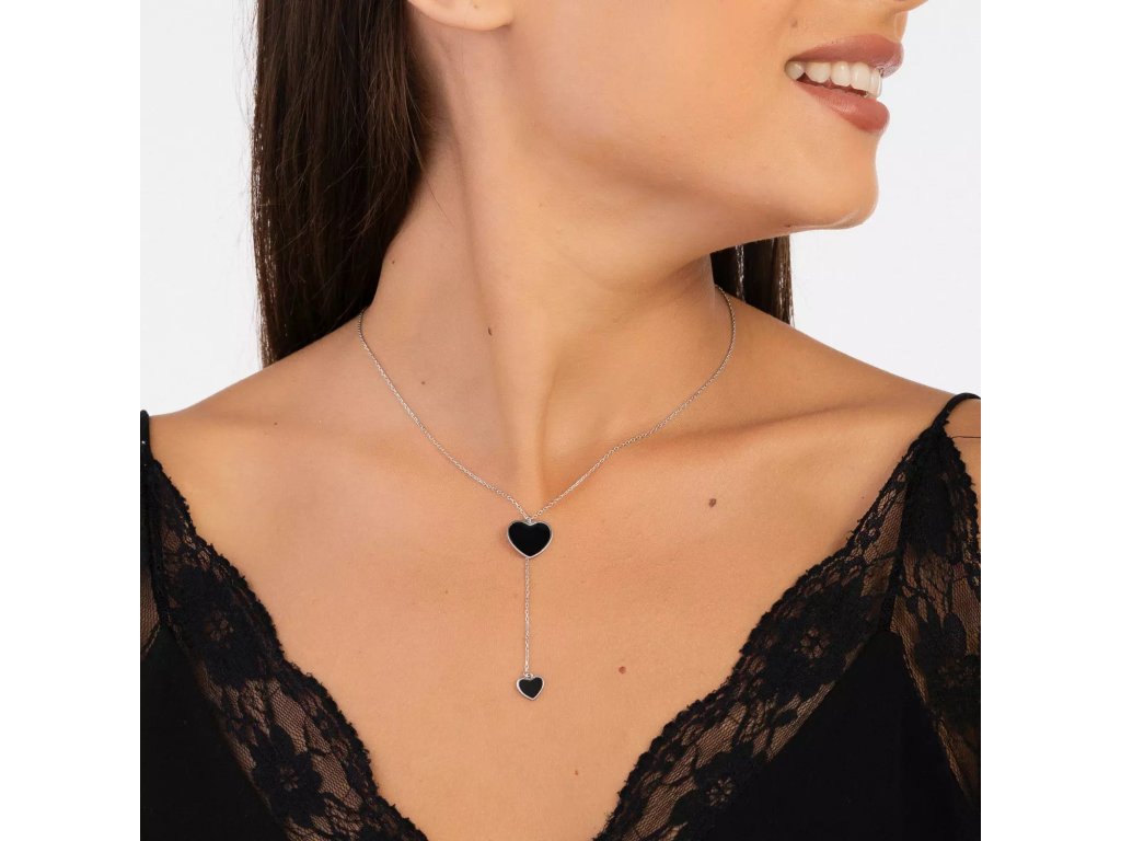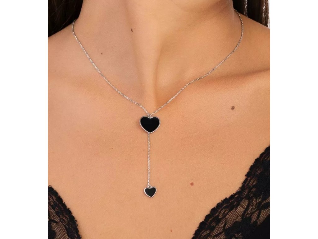 Elenys stříbrný náhrdelník Dvojitá černá srdce