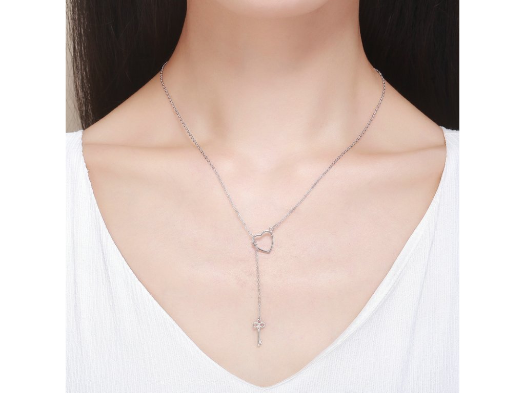 - Stříbrný jemný náhrdelník v designu Klíč k mému srdci. Originální design náhrdelníku, kvalitní zpracování a materiál, ručně dohotovené.