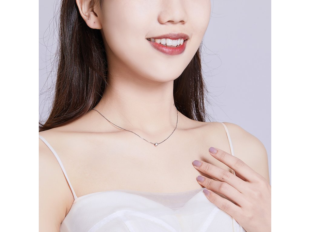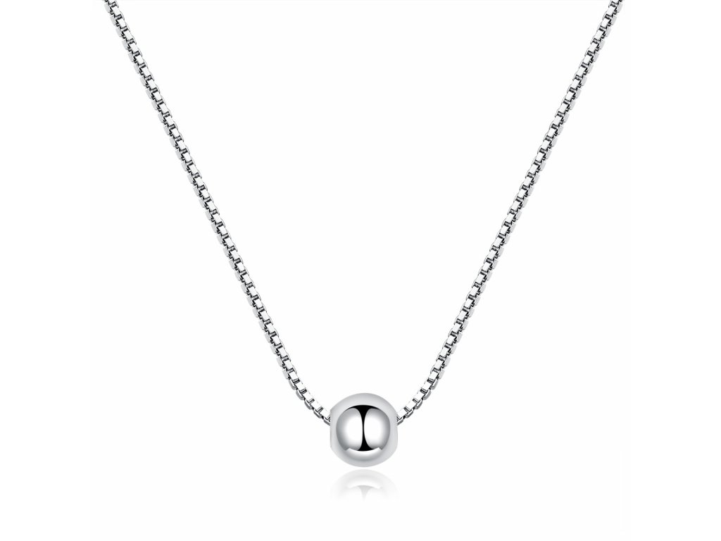 Stříbrný lesklý náhrdelník v designu Krása v jednoduchosti zdobený minimalistickým korálkem. Originální design náhrdelníku, kvalitní zpracování a materiál, ručně dohotovené.