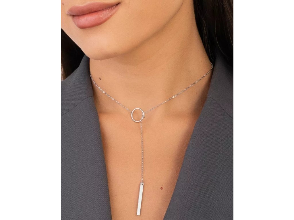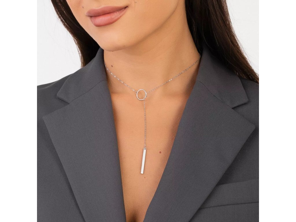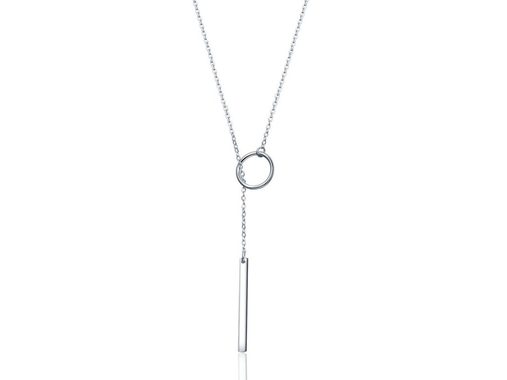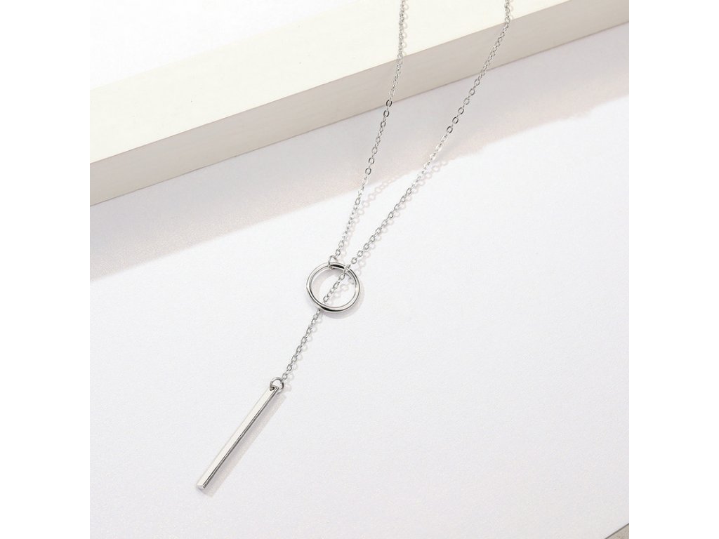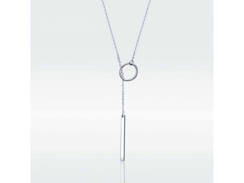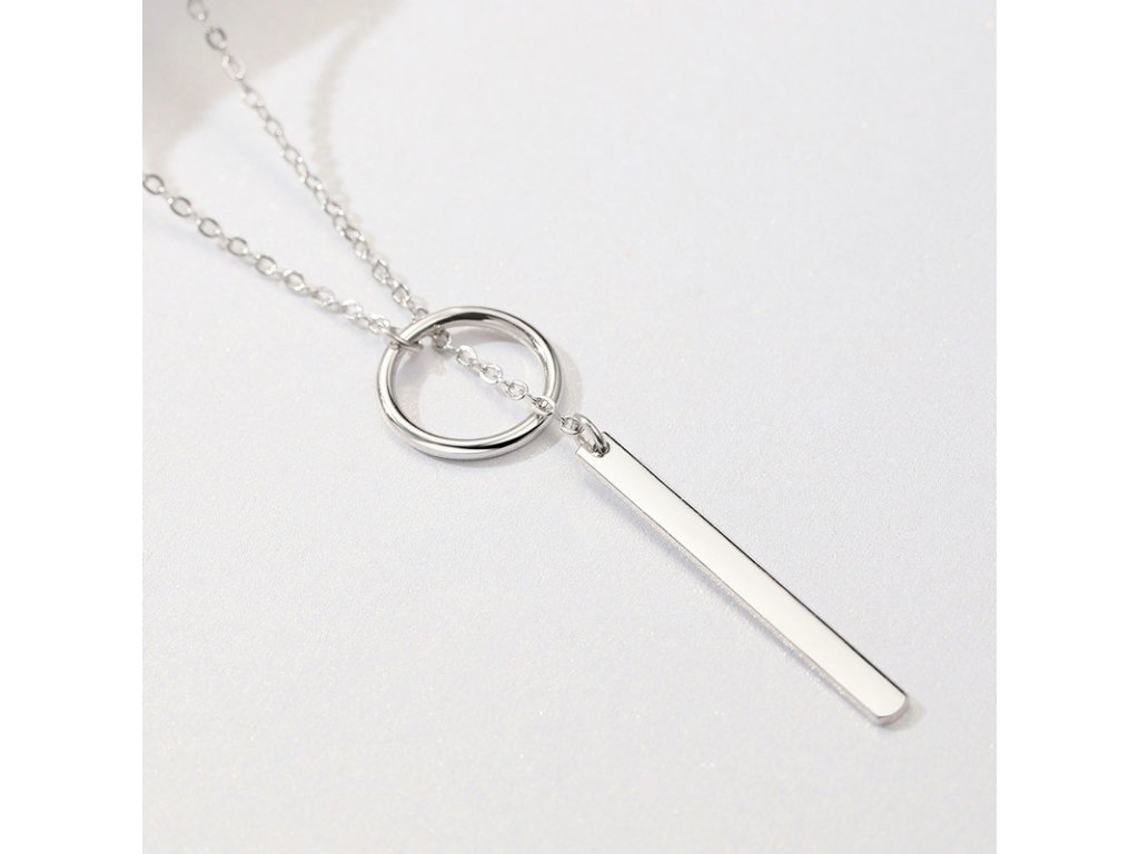 - Jemný a elegantní stříbrný náhrdelník s jednoduchým kruhem, ve kterém je provlečen úzký obdélník. Originální design náhrdelníku, kvalitní zpracování a materiál, ručně dohotovené.