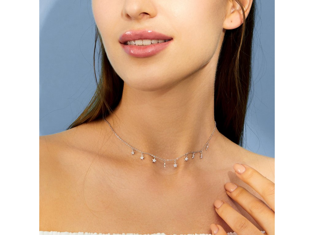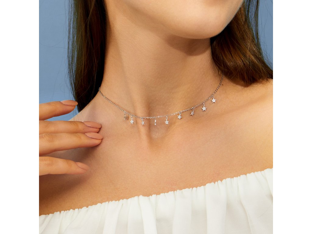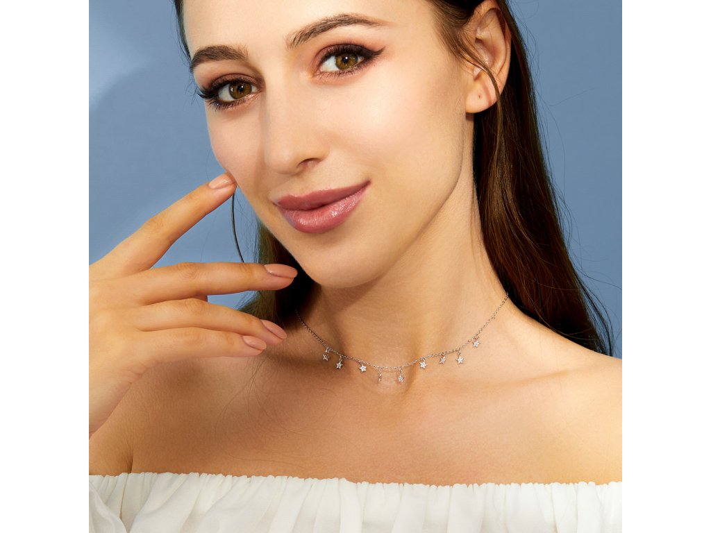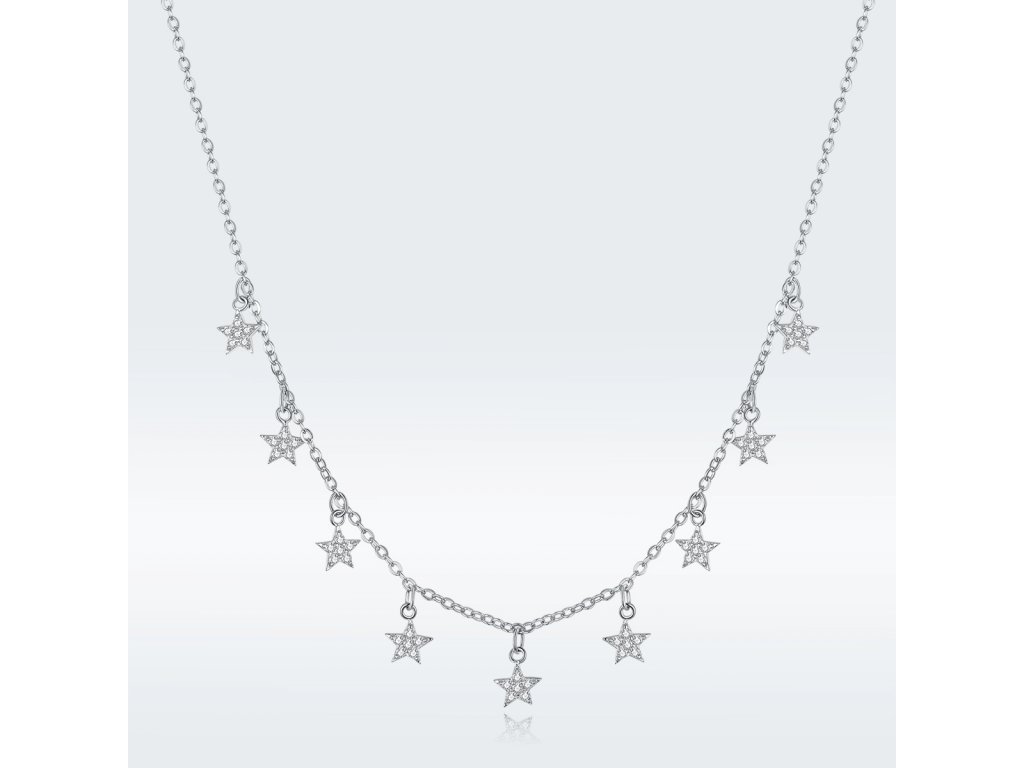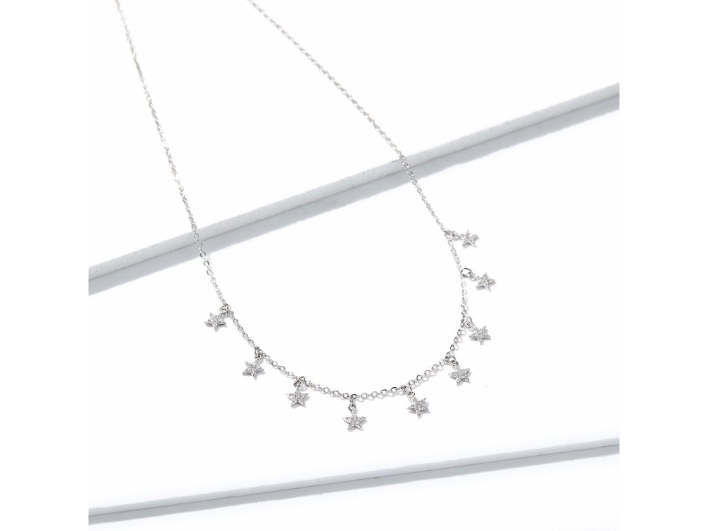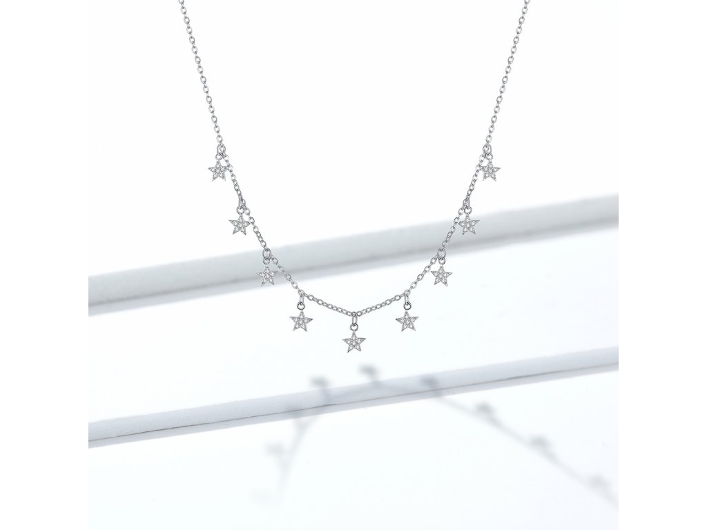 - Stříbrný náhrdelník v designu Pole třpytivých hvězd zdobených čirými zirkony. Originální design náhrdelníku, kvalitní zpracování a materiál, ručně dohotovené.