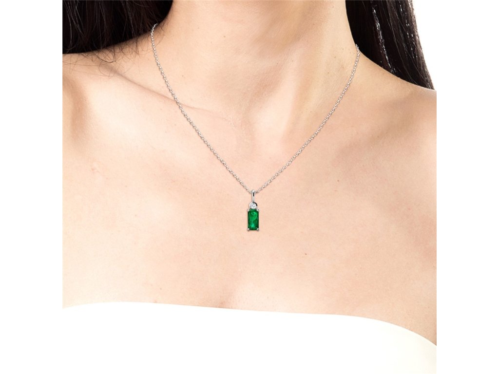 - Stříbrný hypoalergenní jemný náhrdelník pozlacený 18k bílým zlatem s drahokamem zeleným smaragdem. Náhrdelník je obohacen nejkvalitnějším kubickým zirkonem kvality AAAAA. Originální design, kvalitní zpracování a materiál, ručně dohotovené.