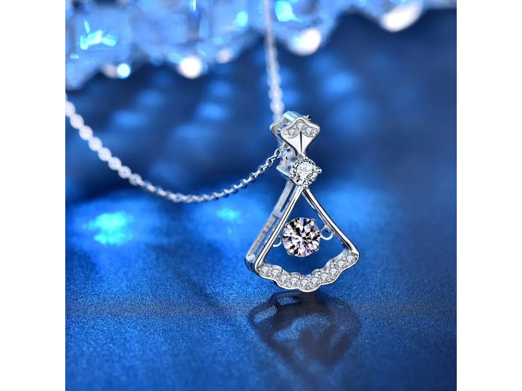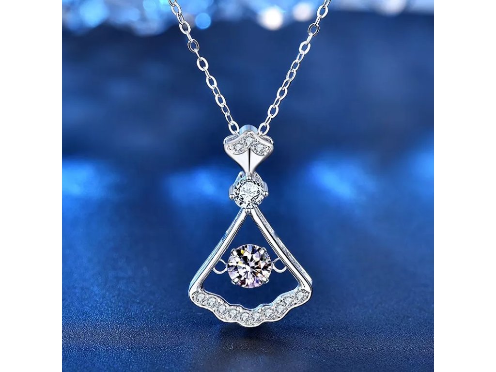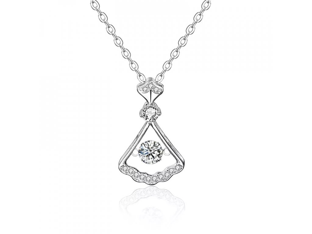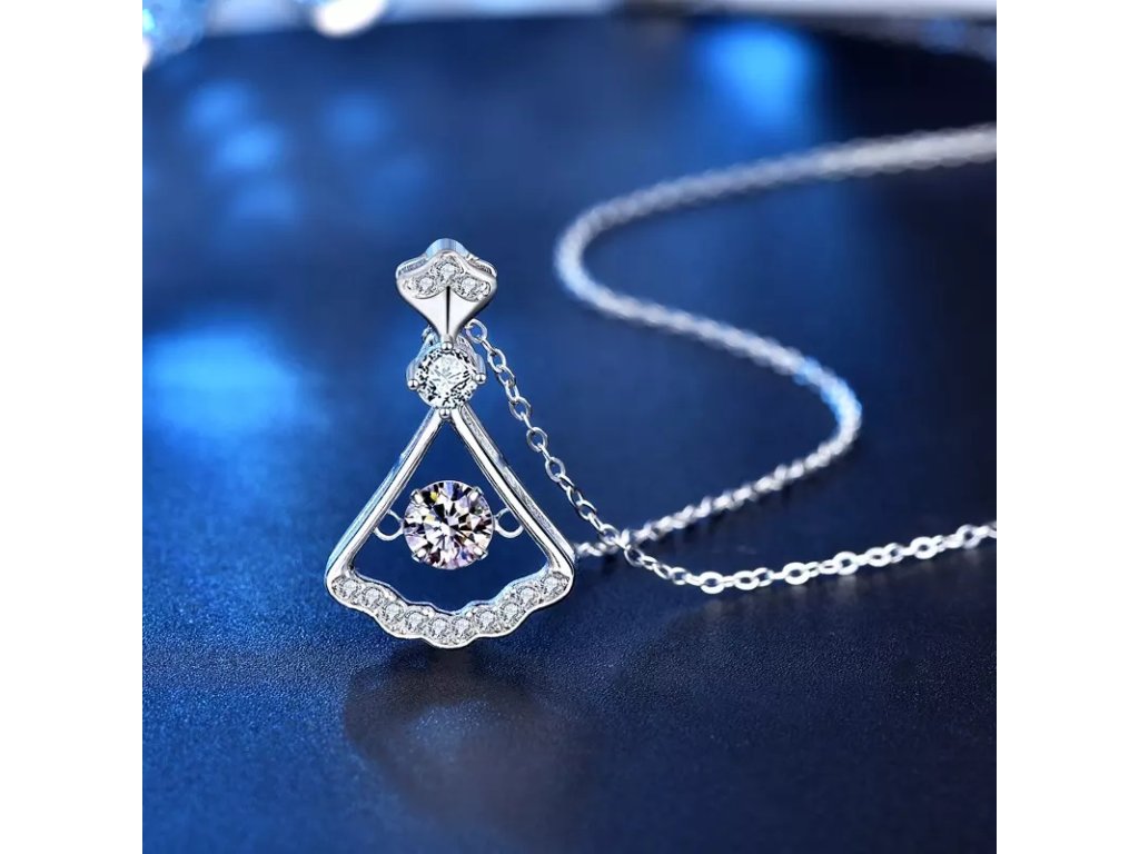 - Stříbrný rhodiovaný náhrdelník v designu sukýnky zdobený drahokamem moissanitem a okolními třpytivými zirkony. Originální design náhrdelníku, kvalitní zpracování a materiál, ručně dohotovené.