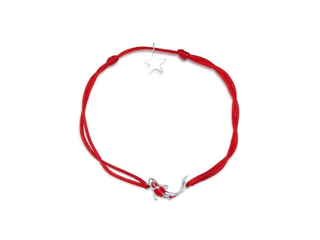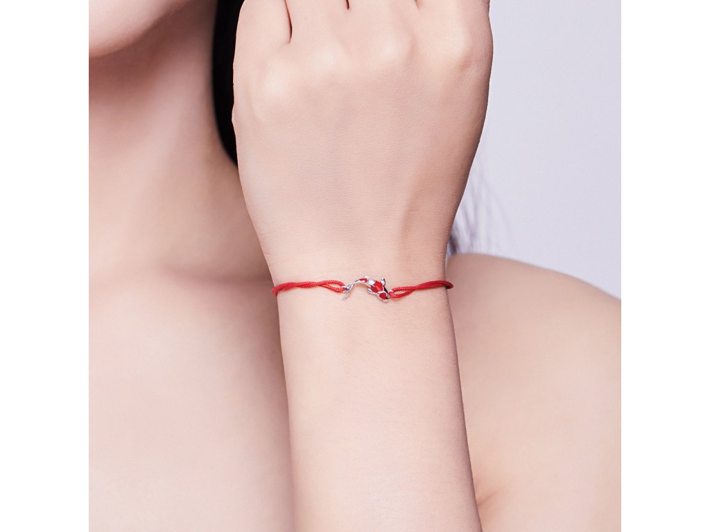 - Látkový nastavitelný náramek v červené barvě s Koi kaprem