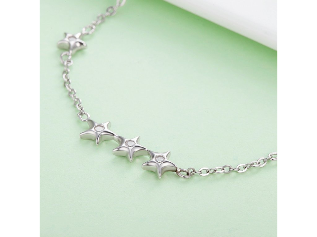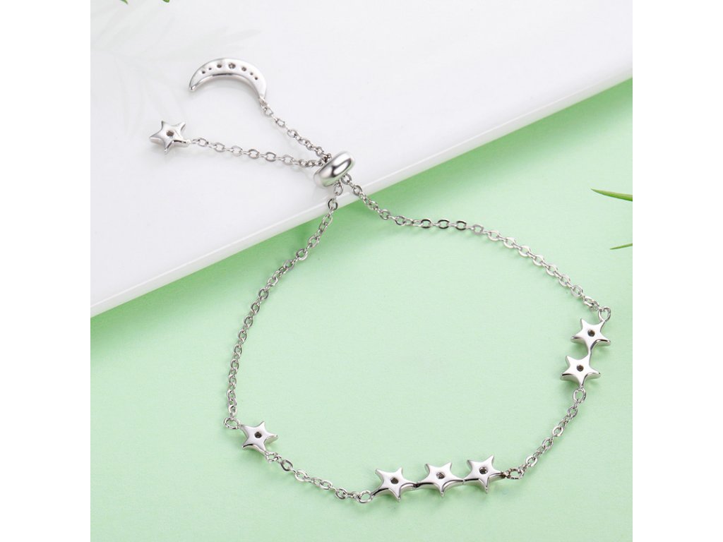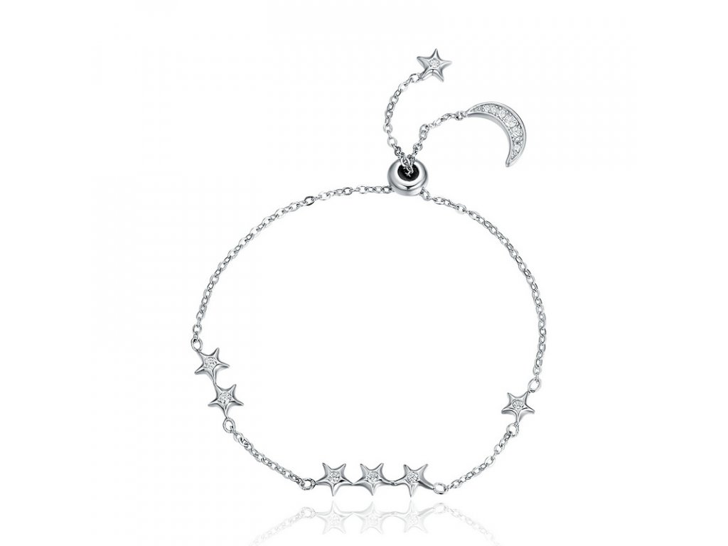 Luxusní a propracovaný náramek zdobený sedmi jemnými hvězdami a třpytivým měsícem s čirými zirkony.