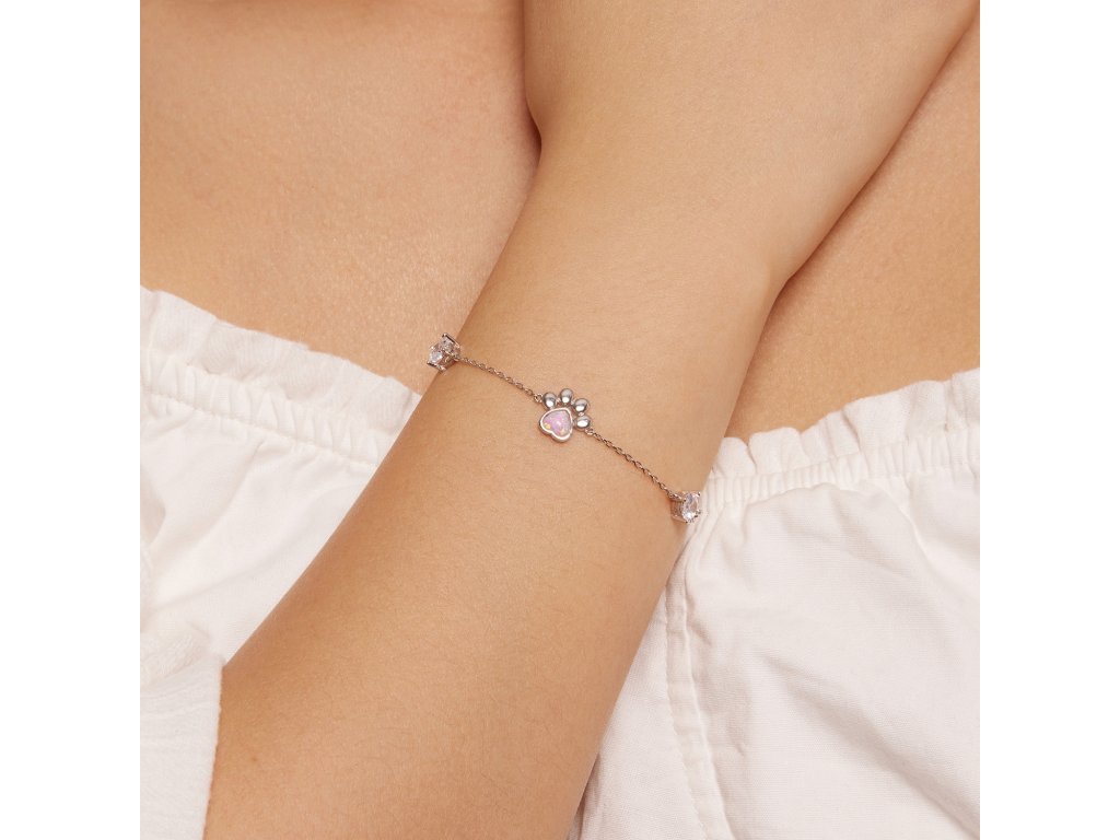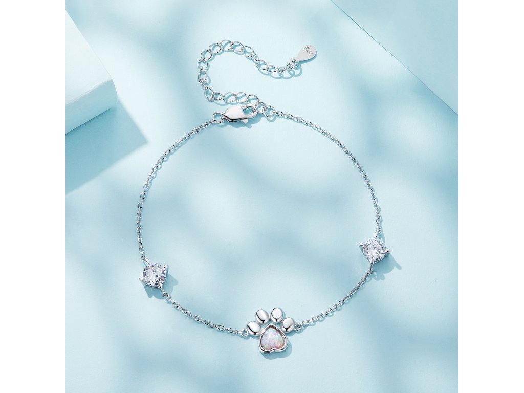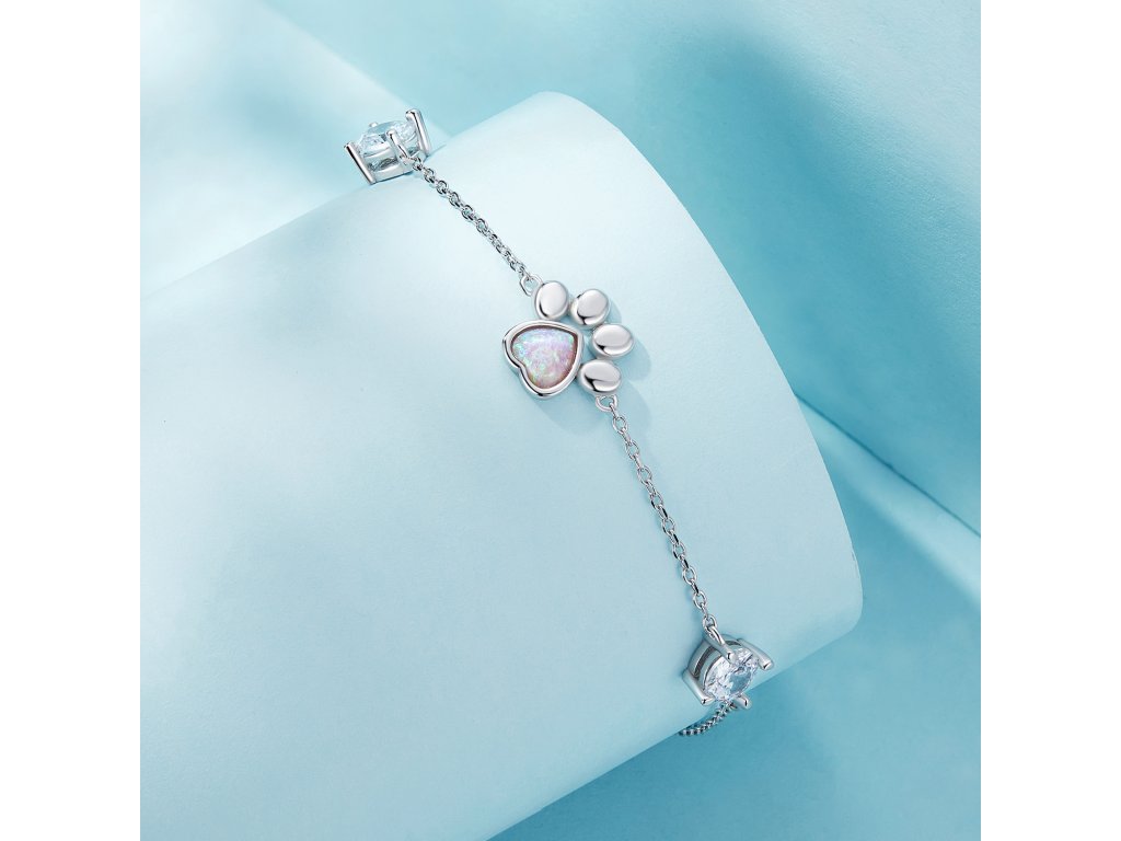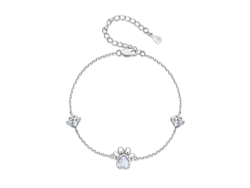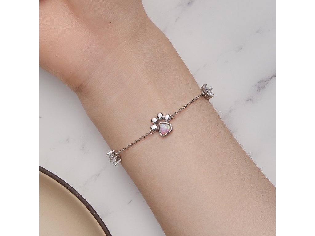 - Stříbrný jemný náramek s packou osazenou syntetickým opálem a zirkony.