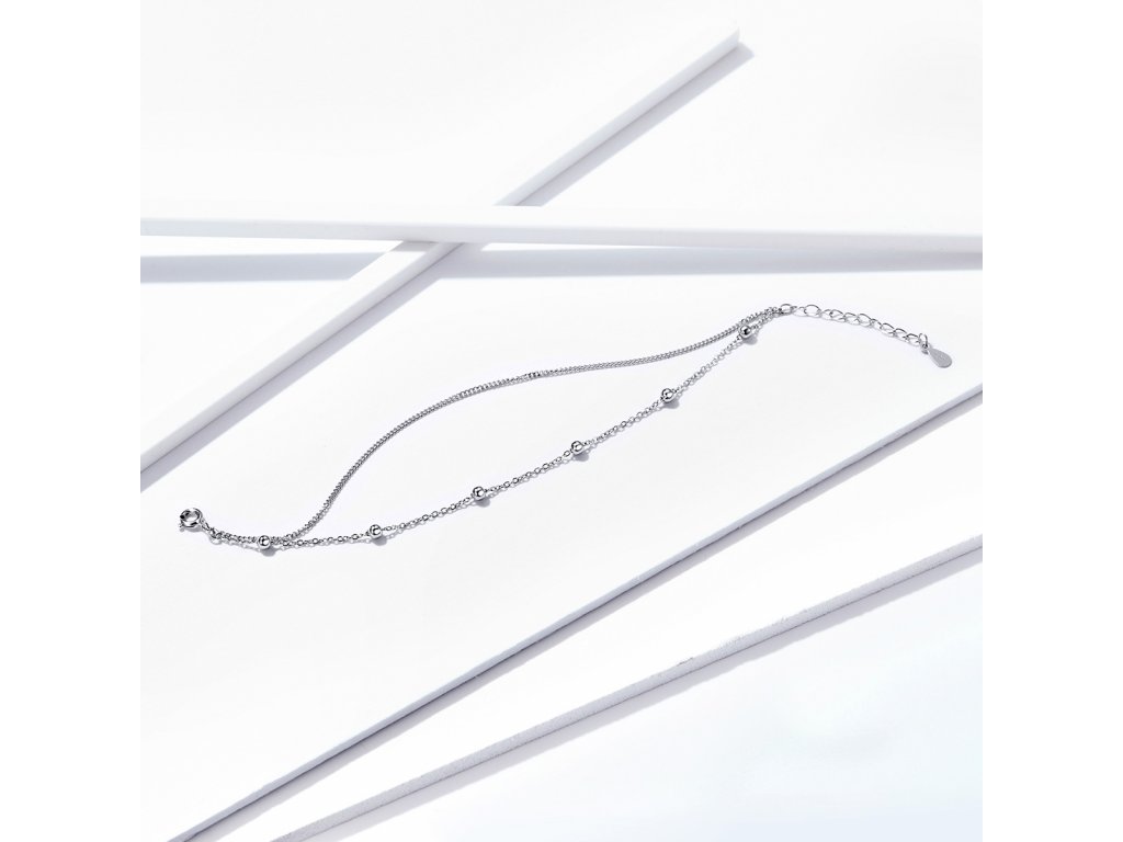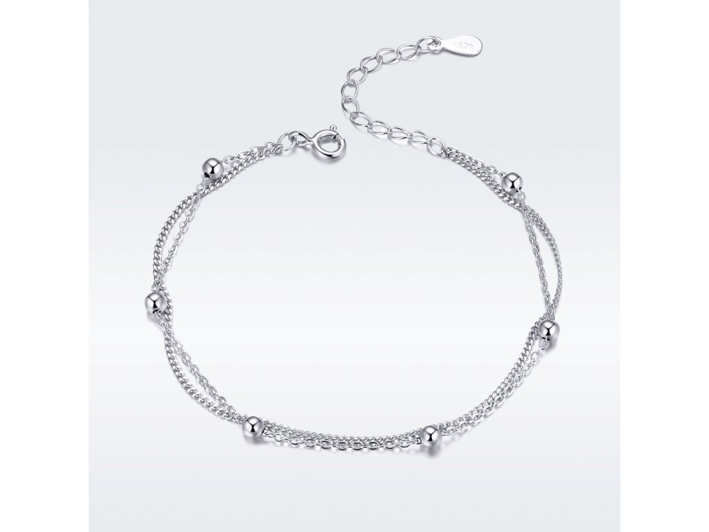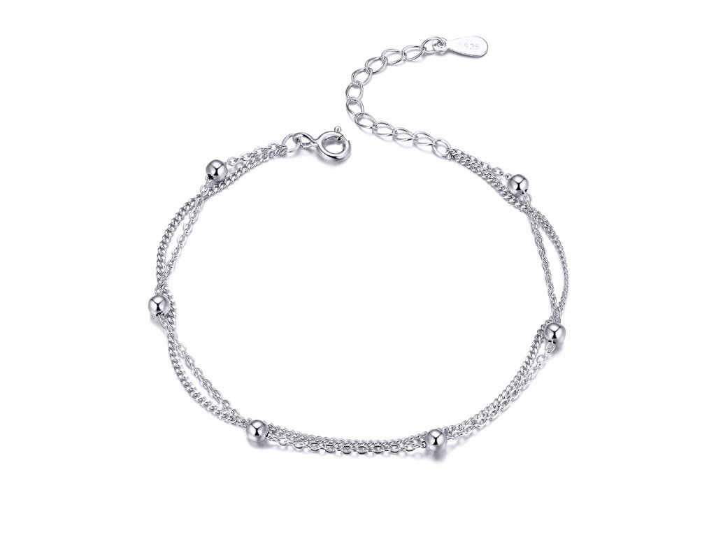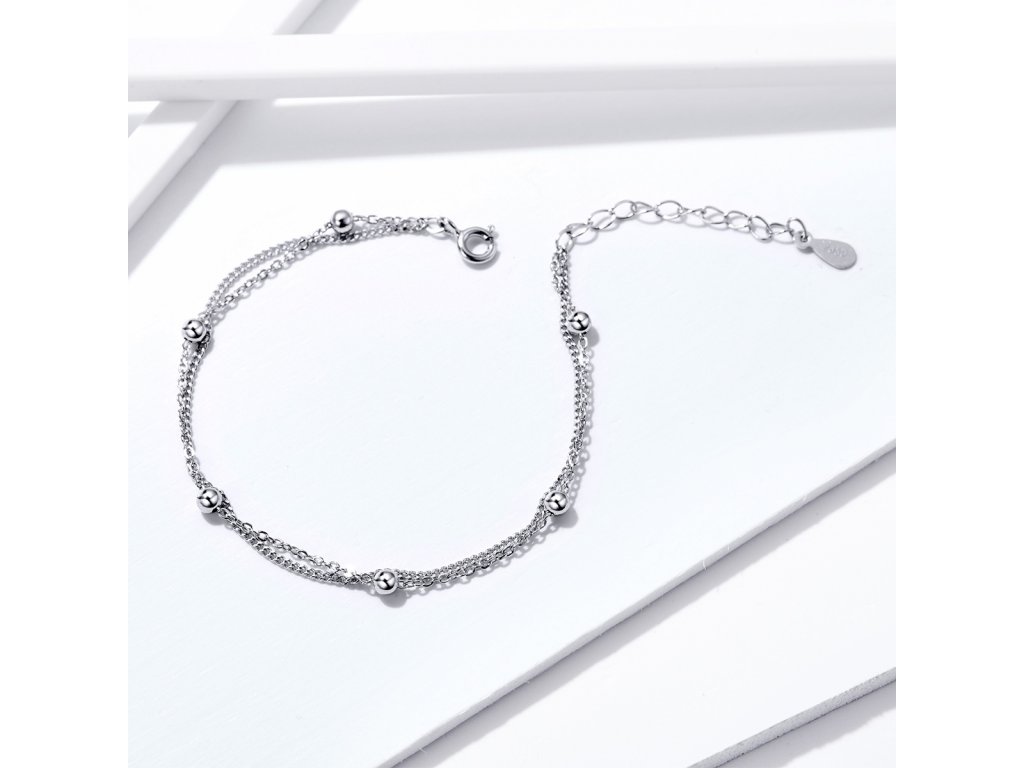 - Stříbrný nastavitelný dvojitý jemný náramek s korálky.
