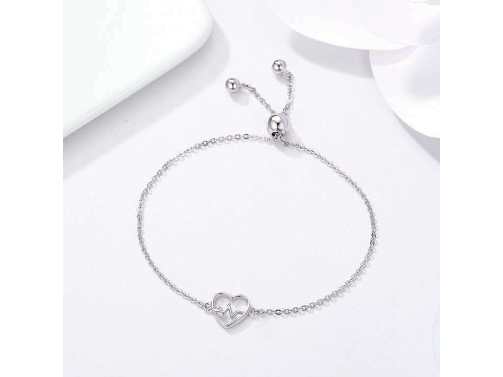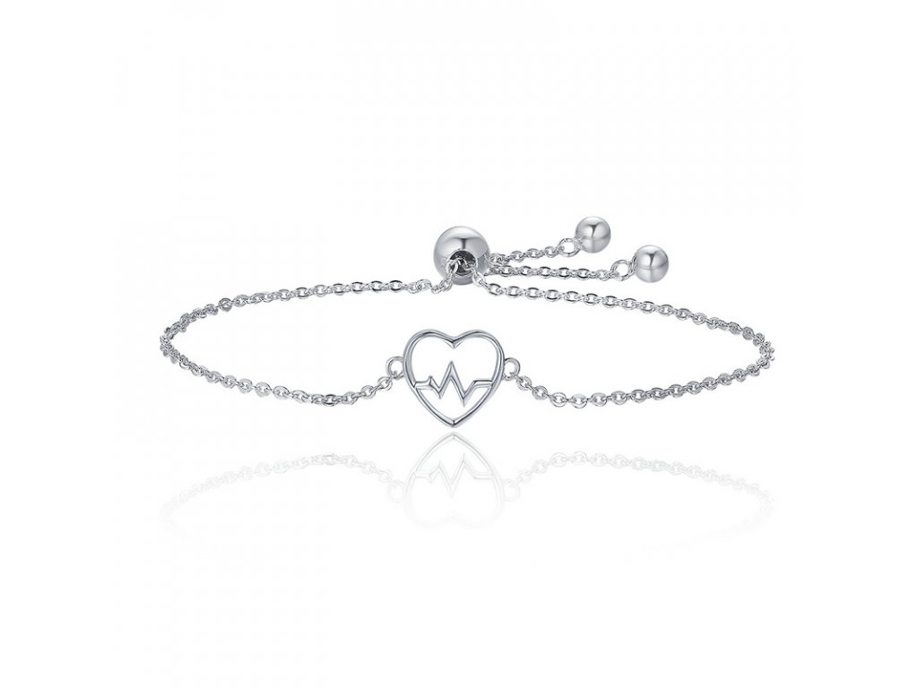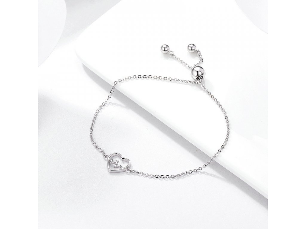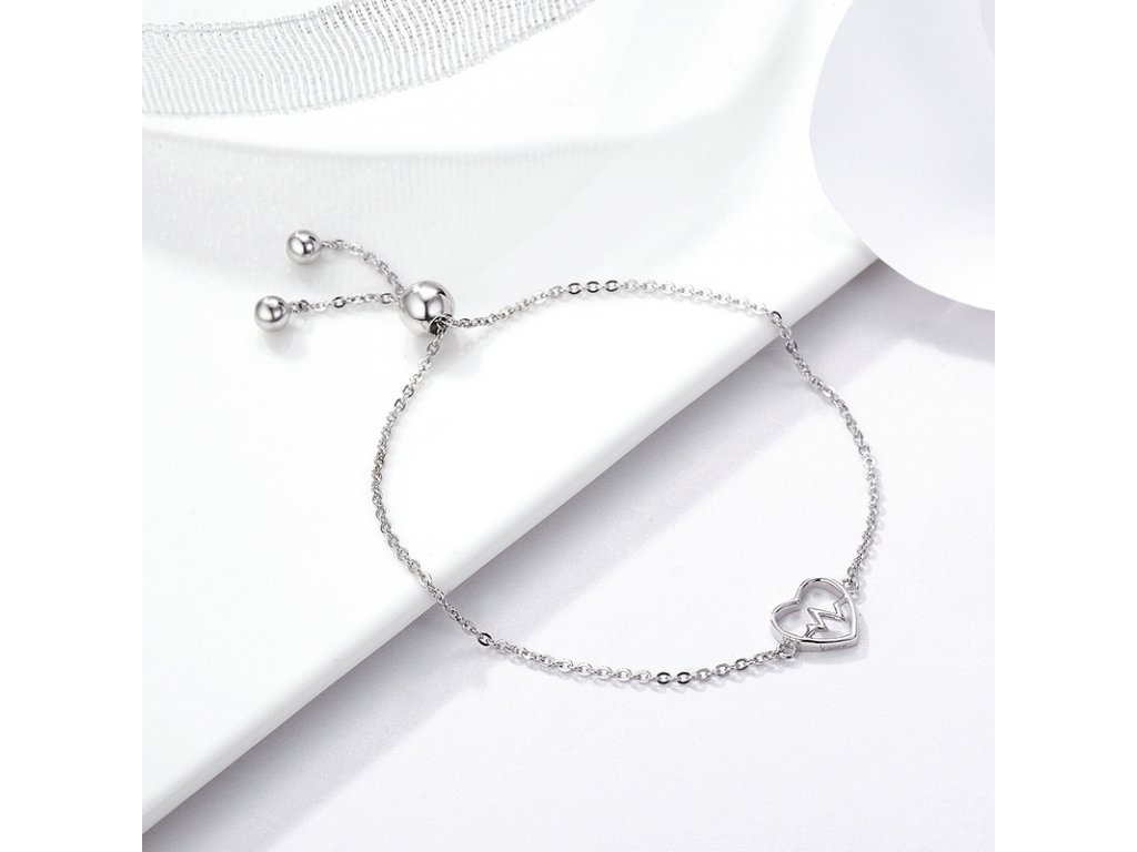 Luxusní a propracovaný jemný náramek "Frekvence lásky" nastavitelné velikosti z kvalitního stříbra zdobený milujícím srdcem.