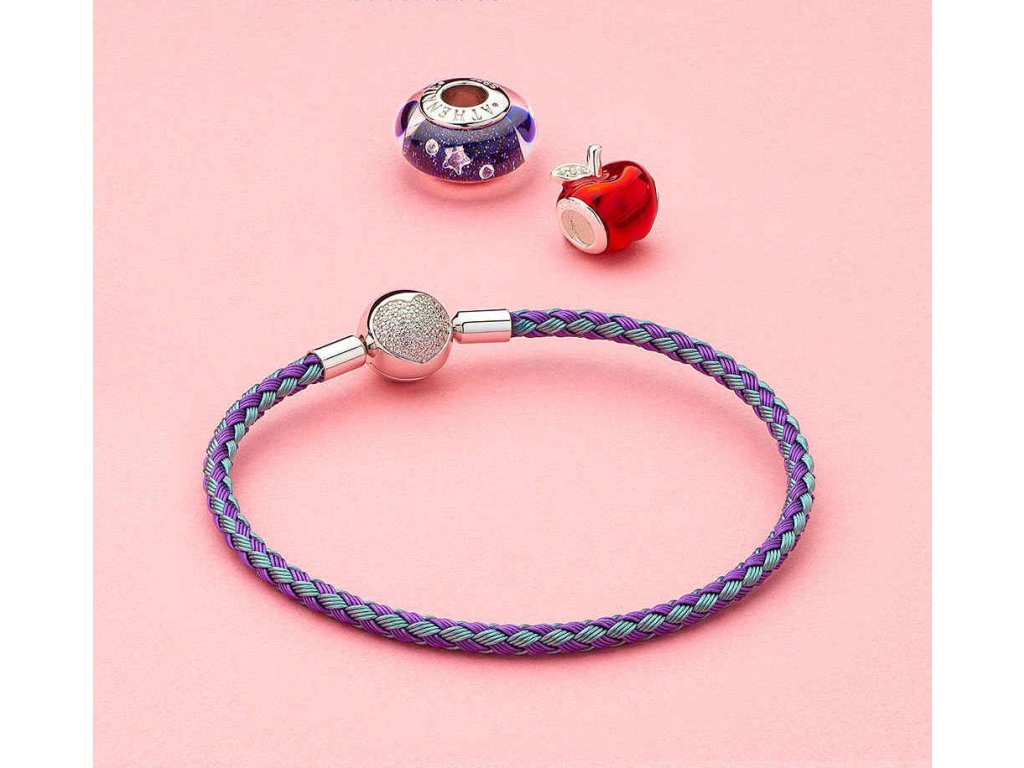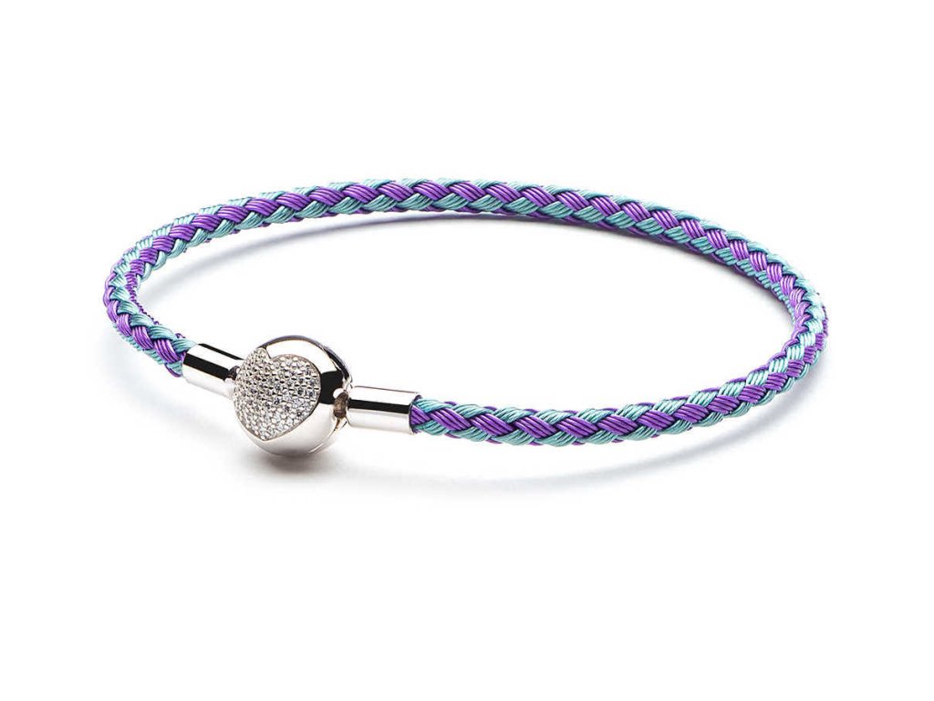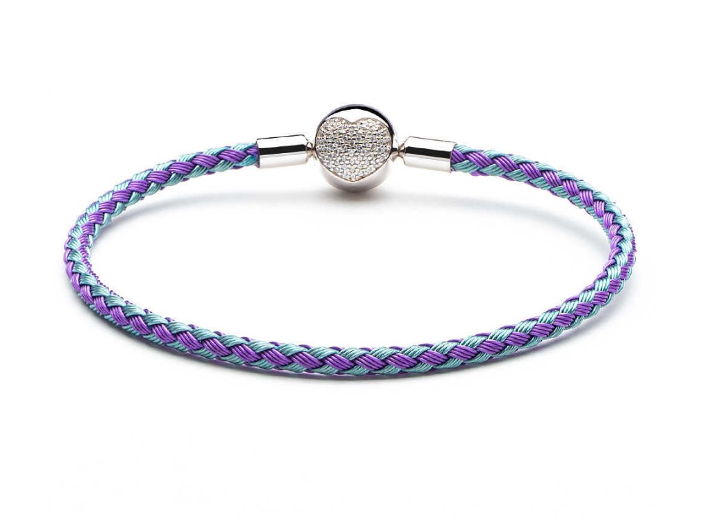 Elenys stříbrný náramek na přívěsky Propletený fialovo-modrý