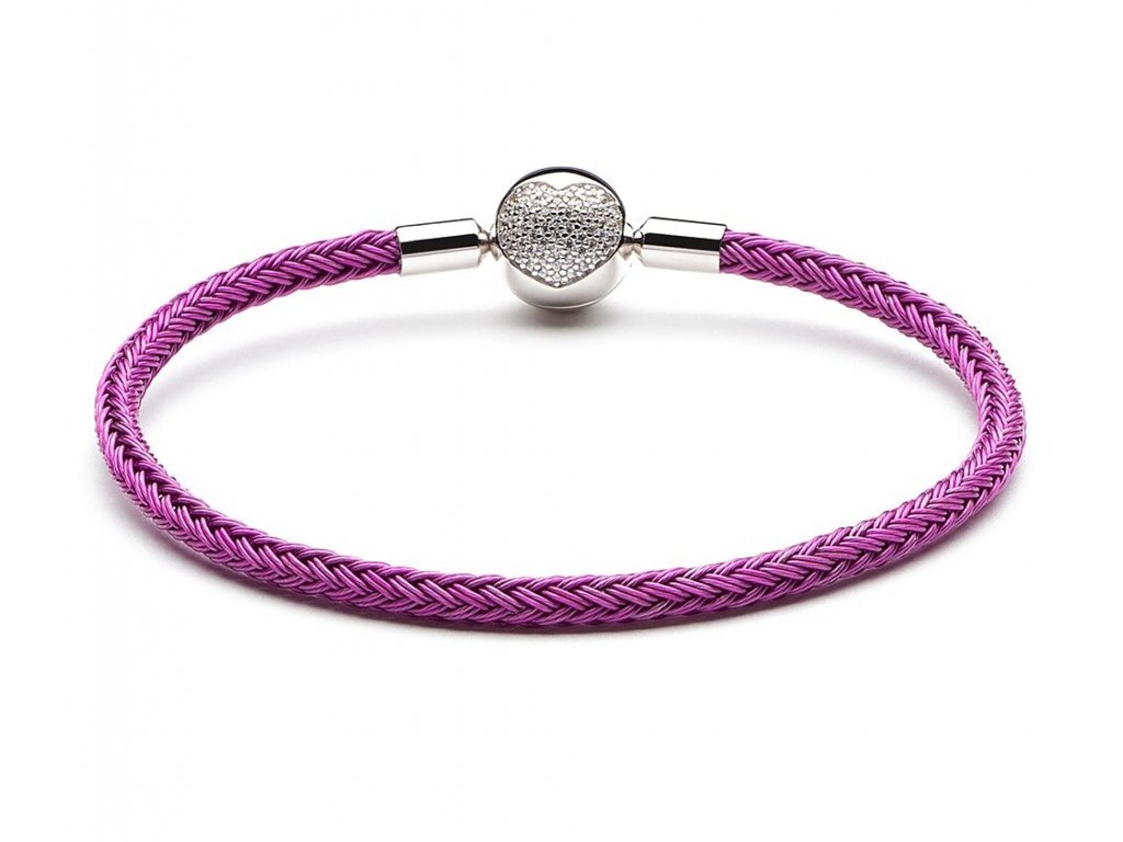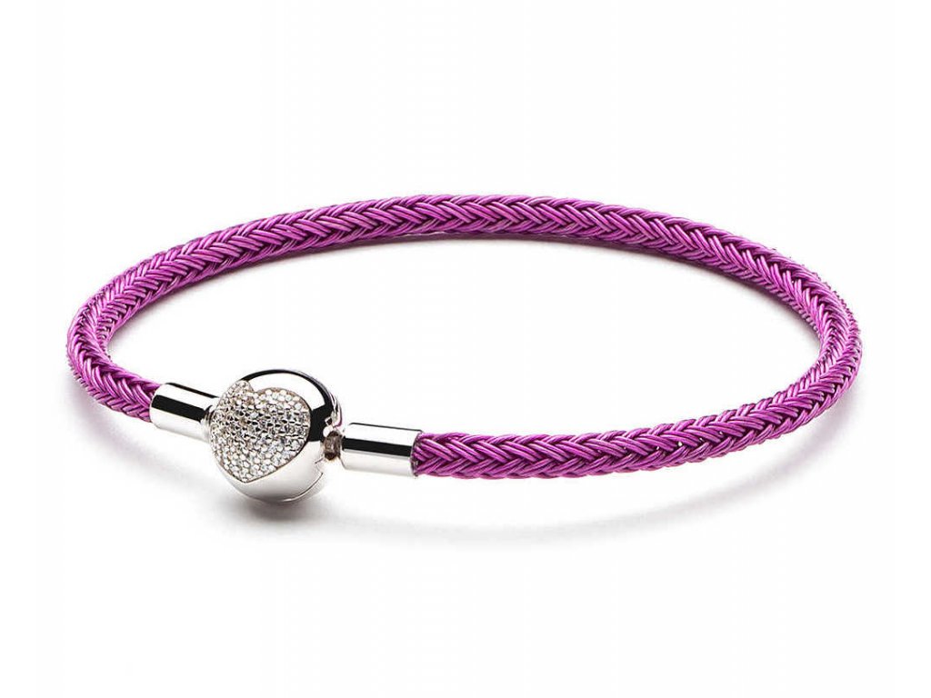 - Stylový třešňově červený / růžový náramek se stříbrným srdcovým zapínáním zdobeným čirými třpytivými zirkony. Originální design náramku, kvalitní zpracování a materiál, ručně dohotovené.