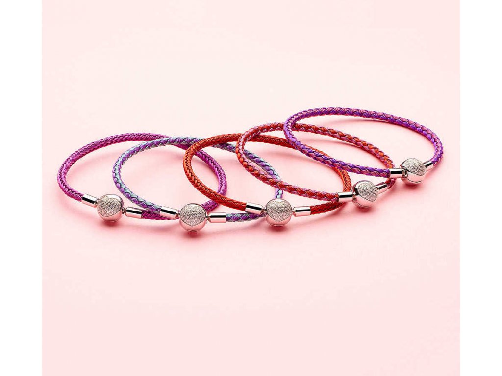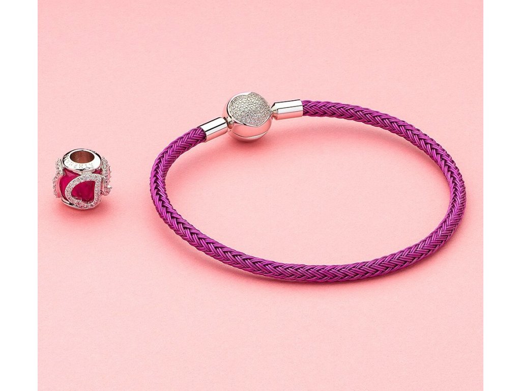 Elenys stříbrný náramek na přívěsky Propletený třešňově červený