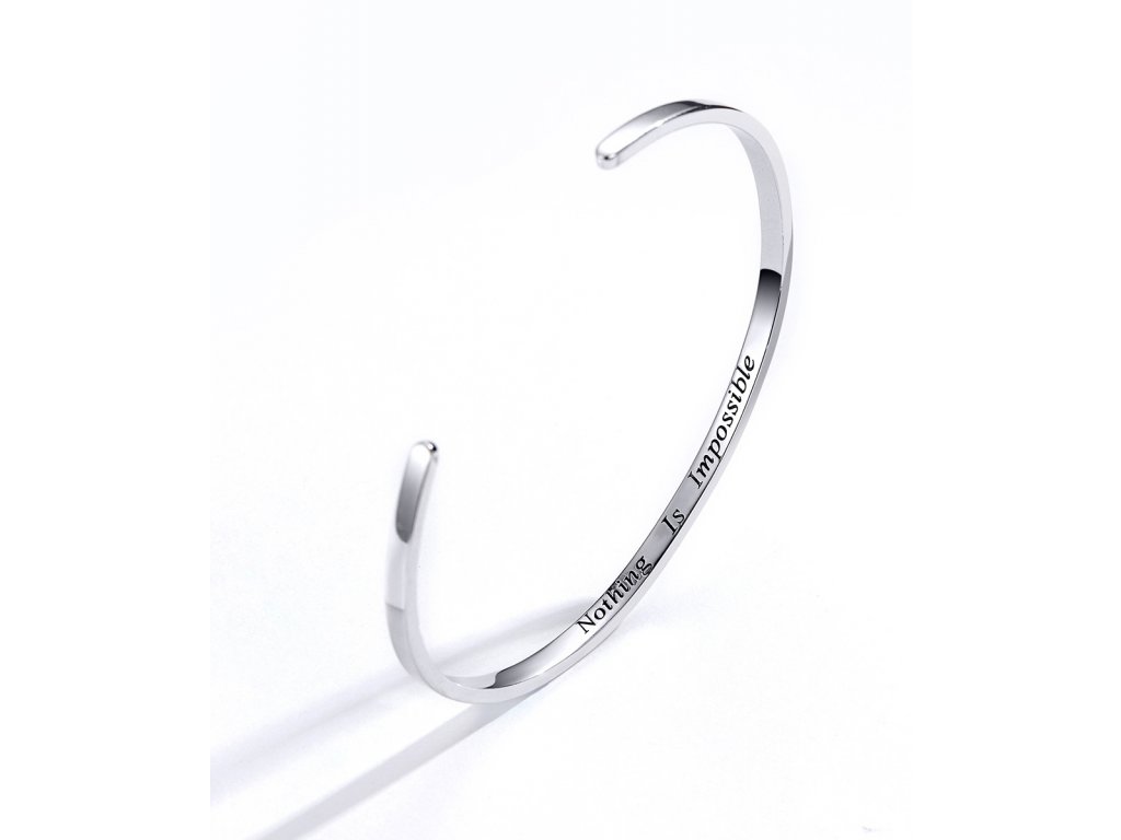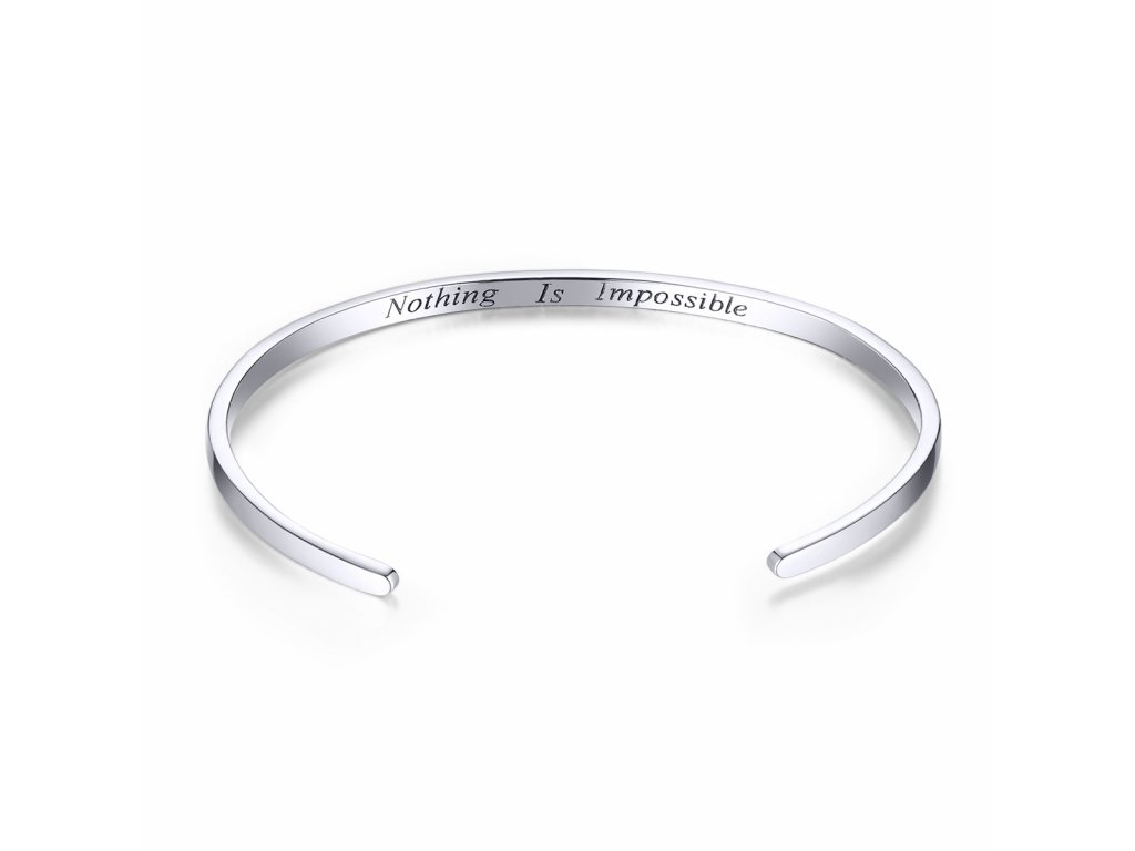- Stříbrný pevný náramek s nápisem "Nothing Is Impossible.".