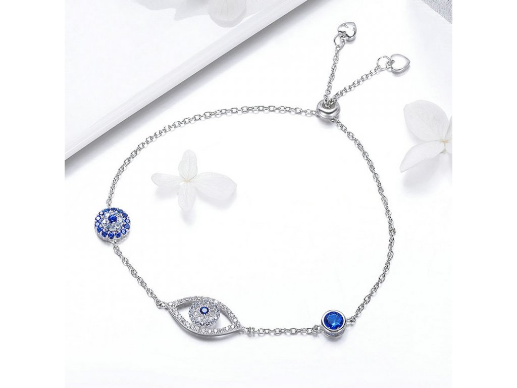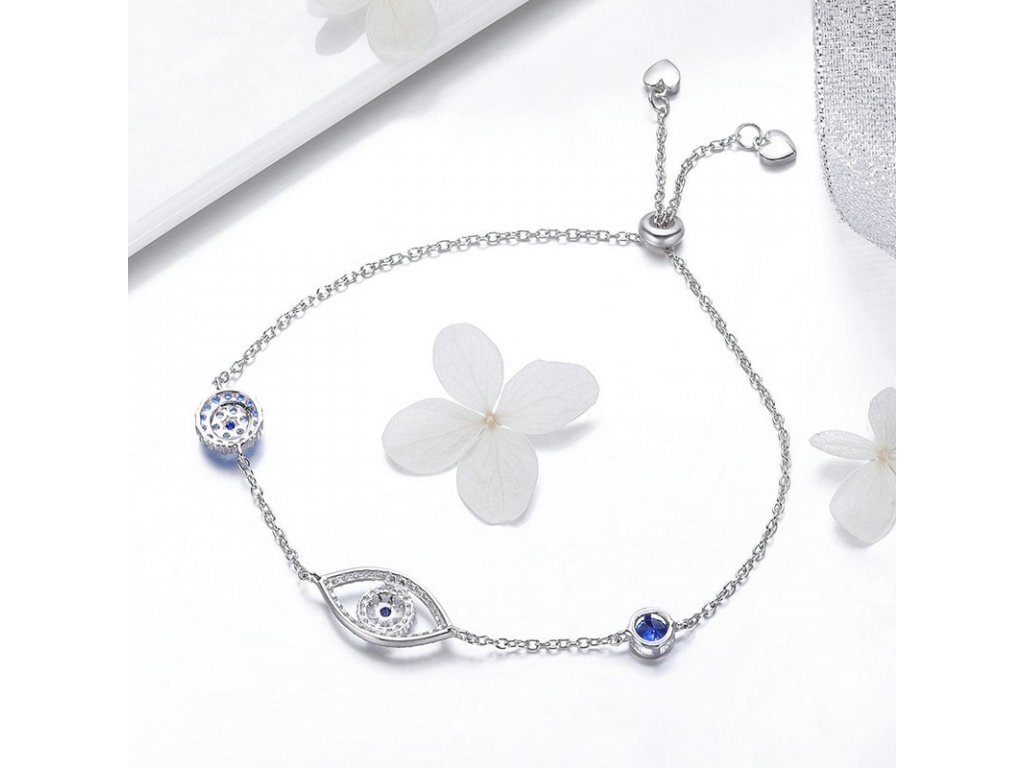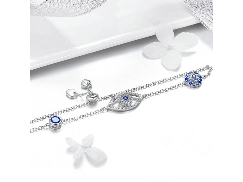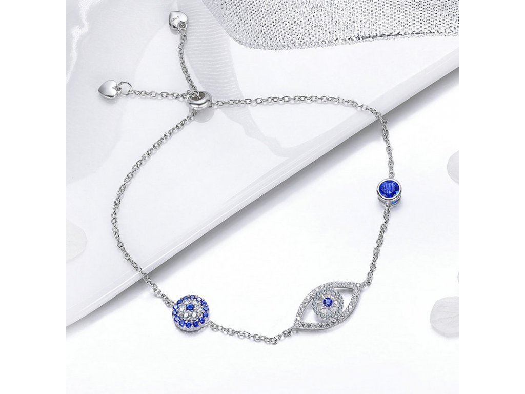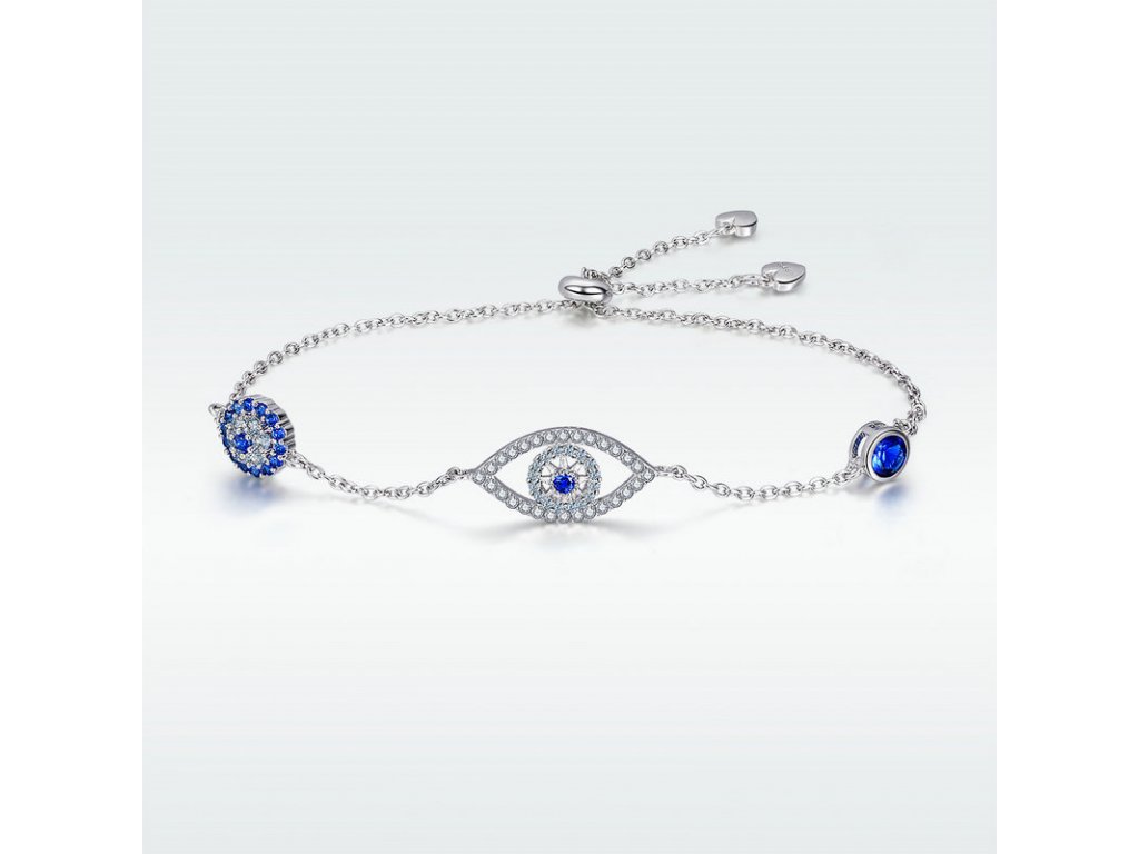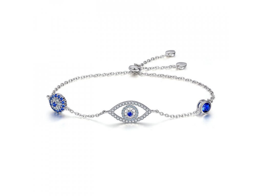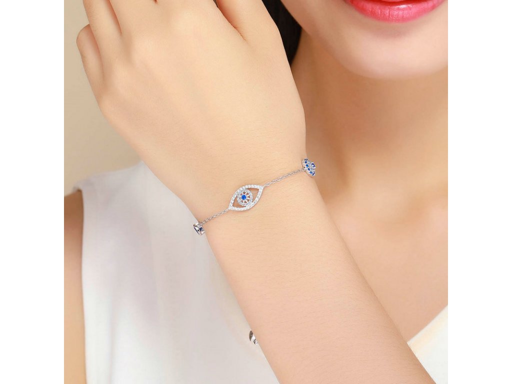Luxusní a propracovaný stříbrný náramek v designu symbolu ochrany zdobený zirkony.