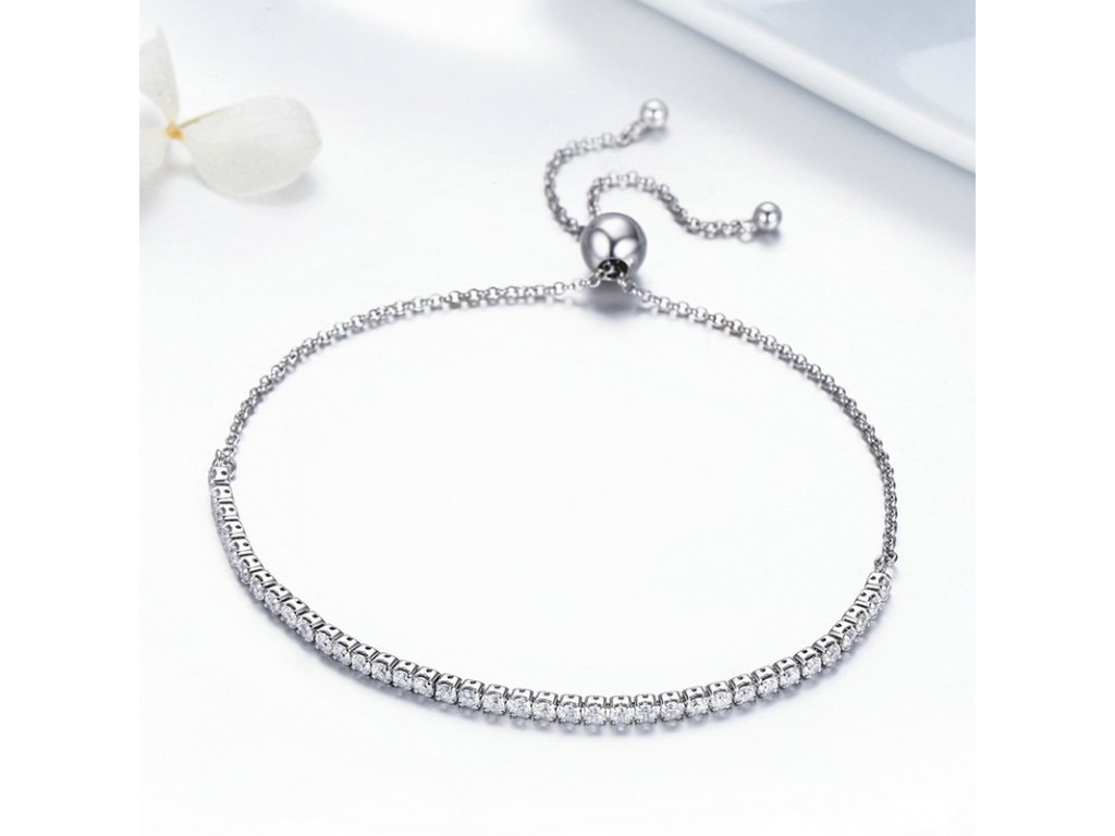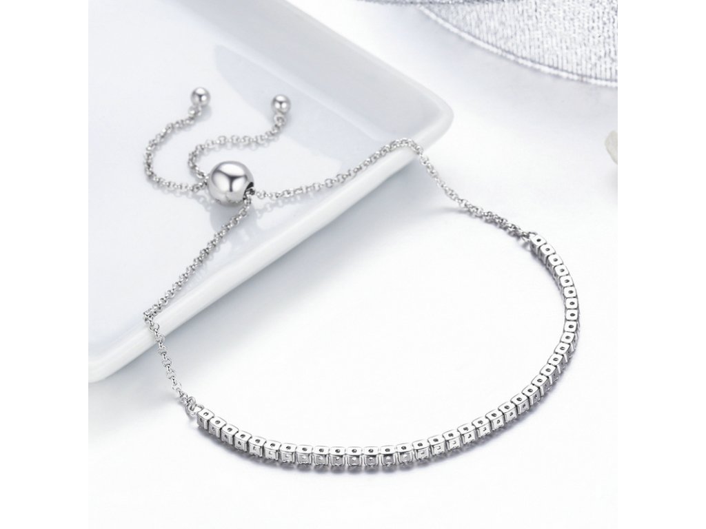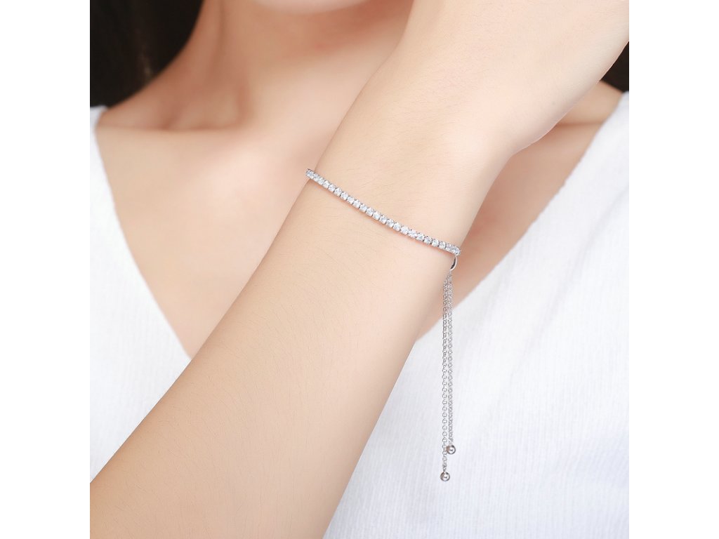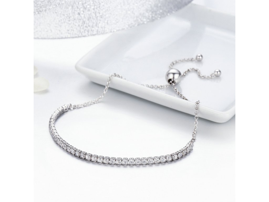 Luxusní a propracovaný jemný náramek z kvalitního stříbra zdobený třpytivými zirkony.