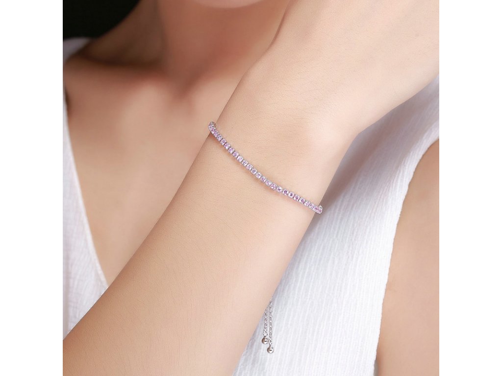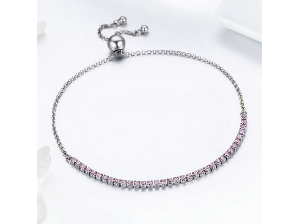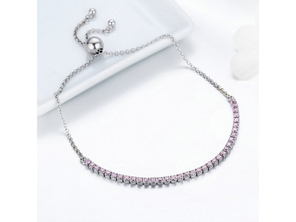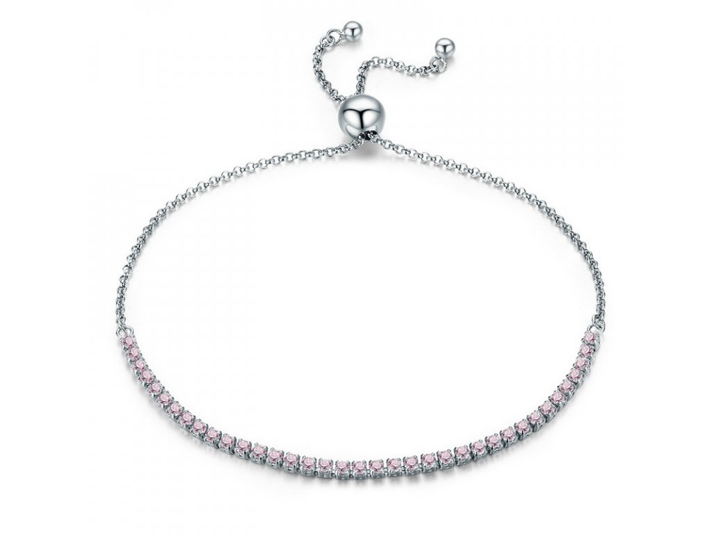 - Stříbrný náramek v designu Třpytivá elegance zdobený světle růžovými zirkony. Originální design náramku, kvalitní zpracování a materiál, ručně dohotovené.