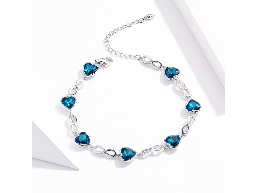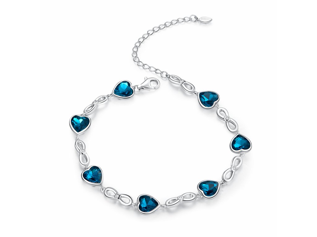 - Stříbrný jemný náramek zdobený srdci z rakouských krystalů.