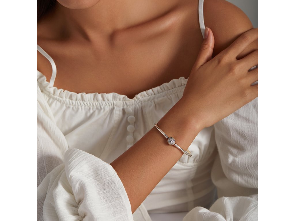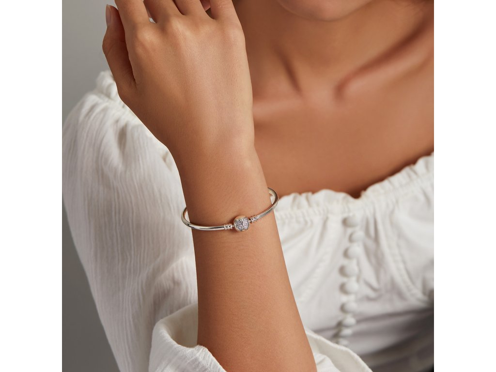 Elenys stříbrný pevný náramek na přívěsky Třpytivý motýl