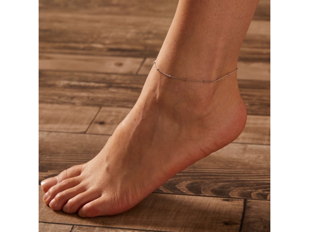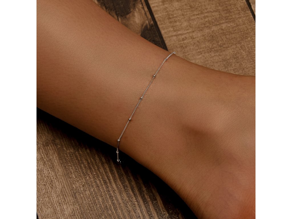Elenys stříbrný pozlacený řetízek na nohu – jemné kuličky elegance 18K bílé zlato
