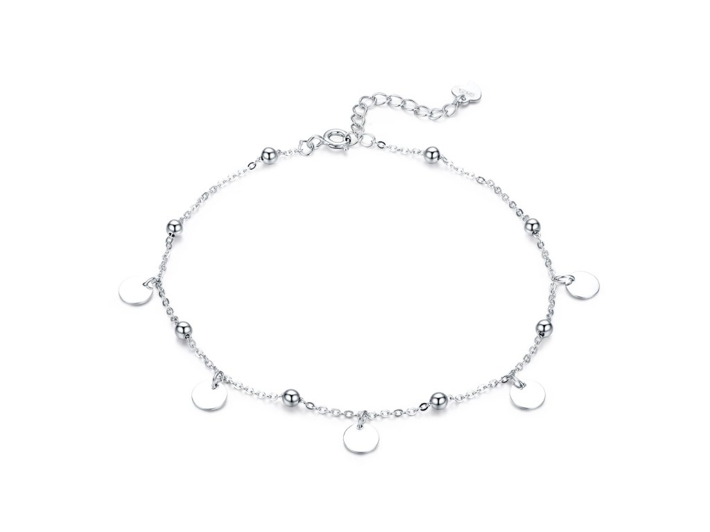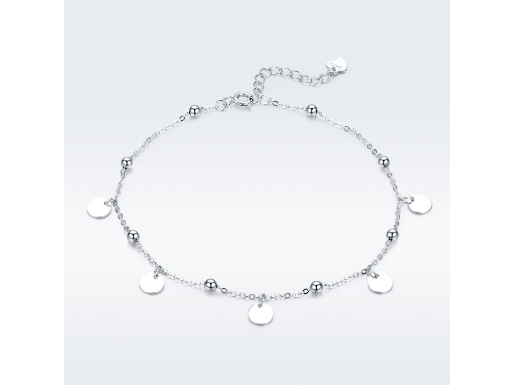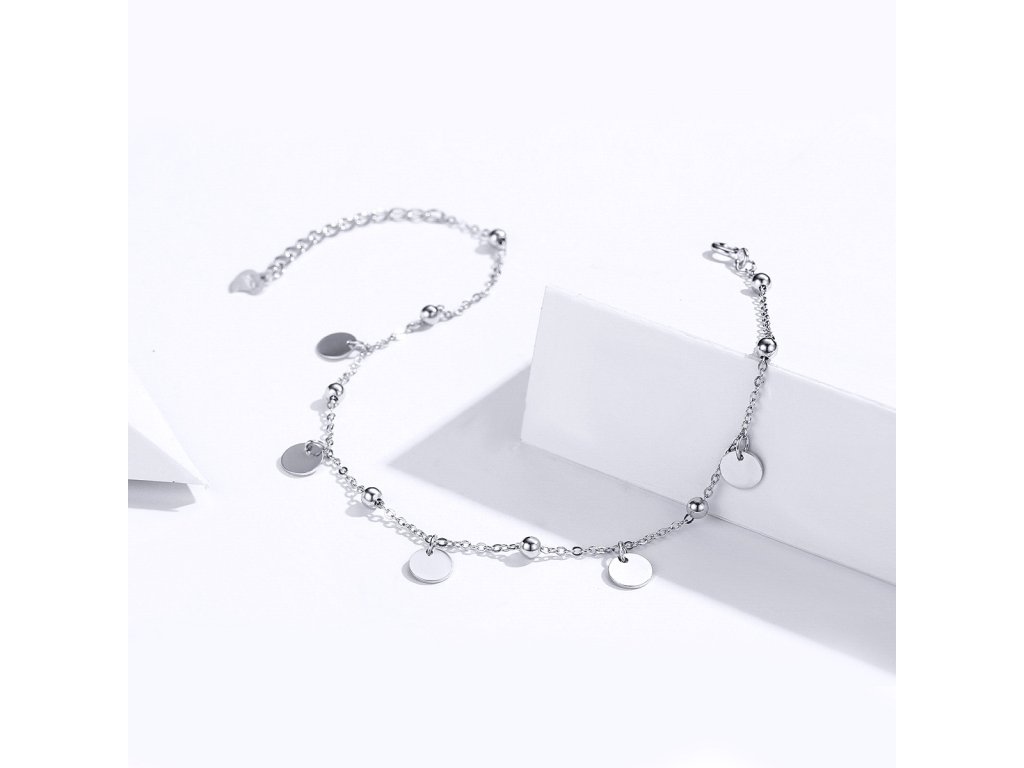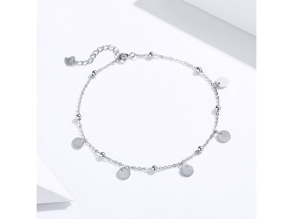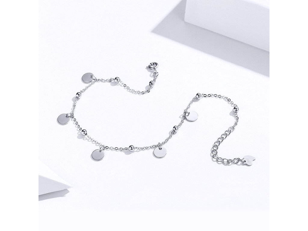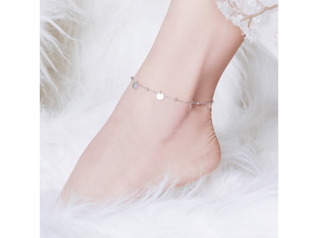Tento elegantní řetízek na nohu přitahuje pozornost díky jemným kulatým přívěskům, které se při pohybu rytmicky pohupují a vytvářejí efekt mihotavého světla. V kombinaci s drobnými kuličkami působí vzdušně, ale zároveň výrazně.