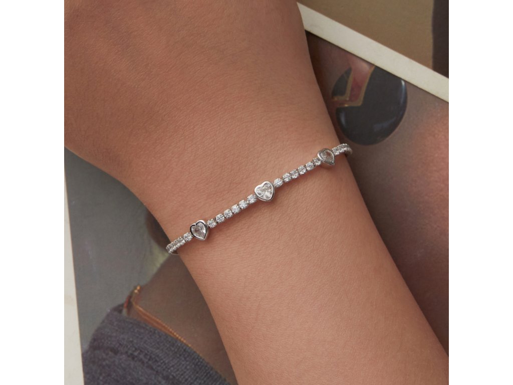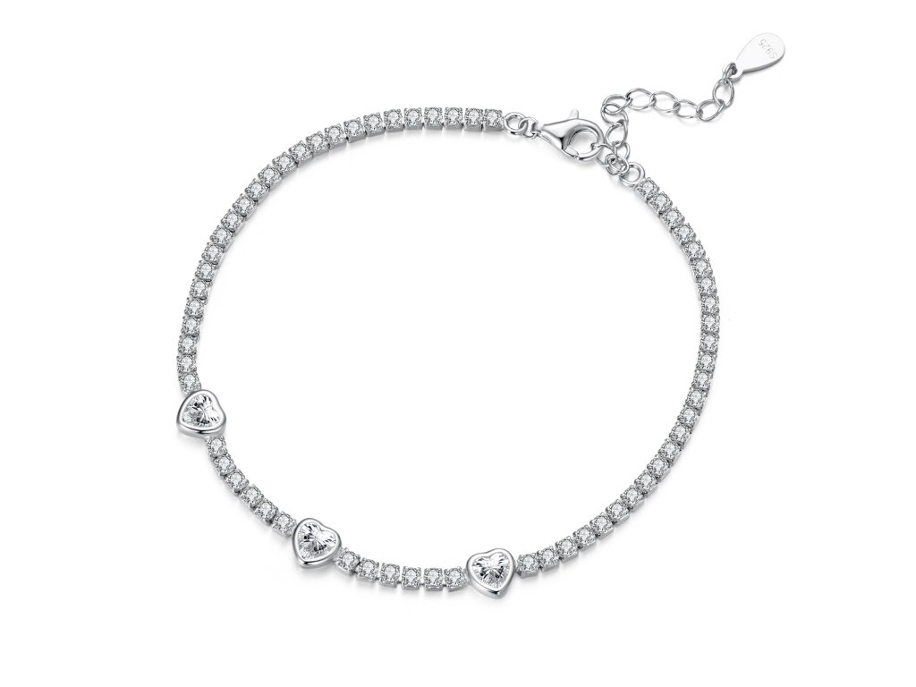 - Stříbrný pozlacený srdíčkový náramek zdobený čirými zirkony.