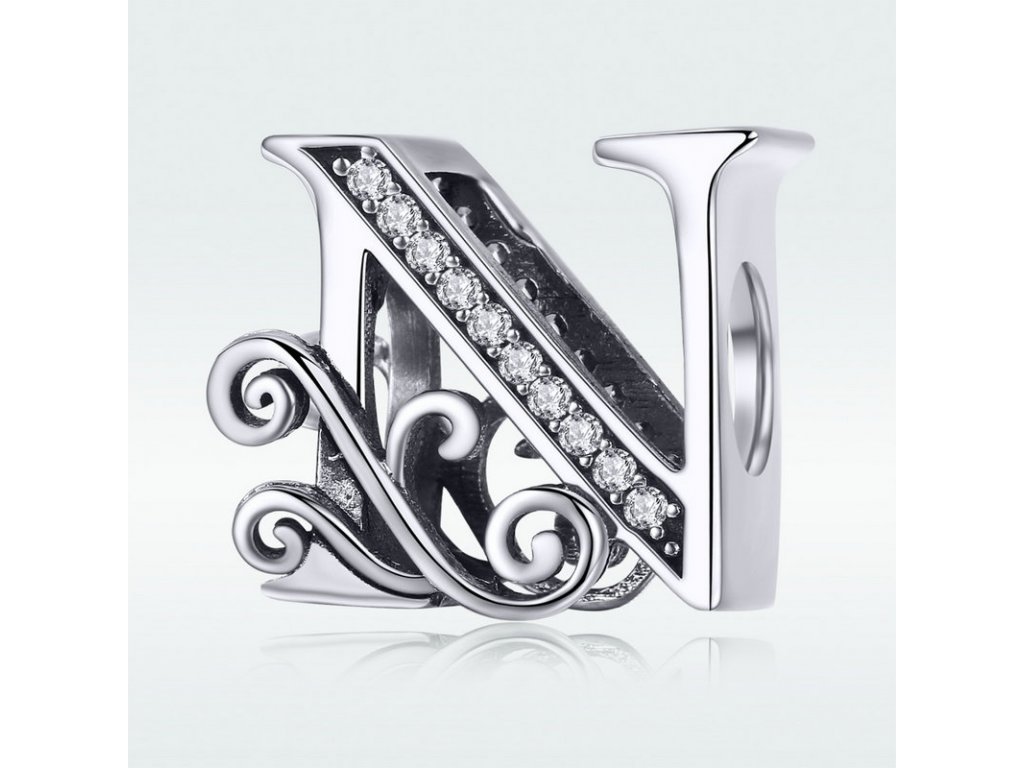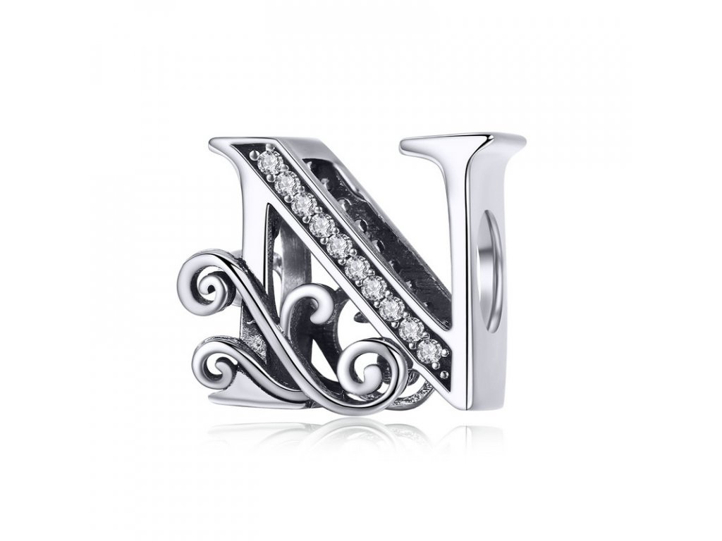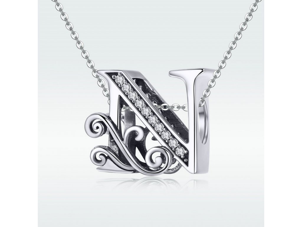 - Luxusní a propracovaný stříbrný přívěsek ve tvaru písmenka "N" zdobený třpytivými zirkony. Obdarujte sebe nebo své blízké tímto stříbrným kouzlem. Originální design prstenu, kvalitní zpracování a materiál, ručně dohotovené.
