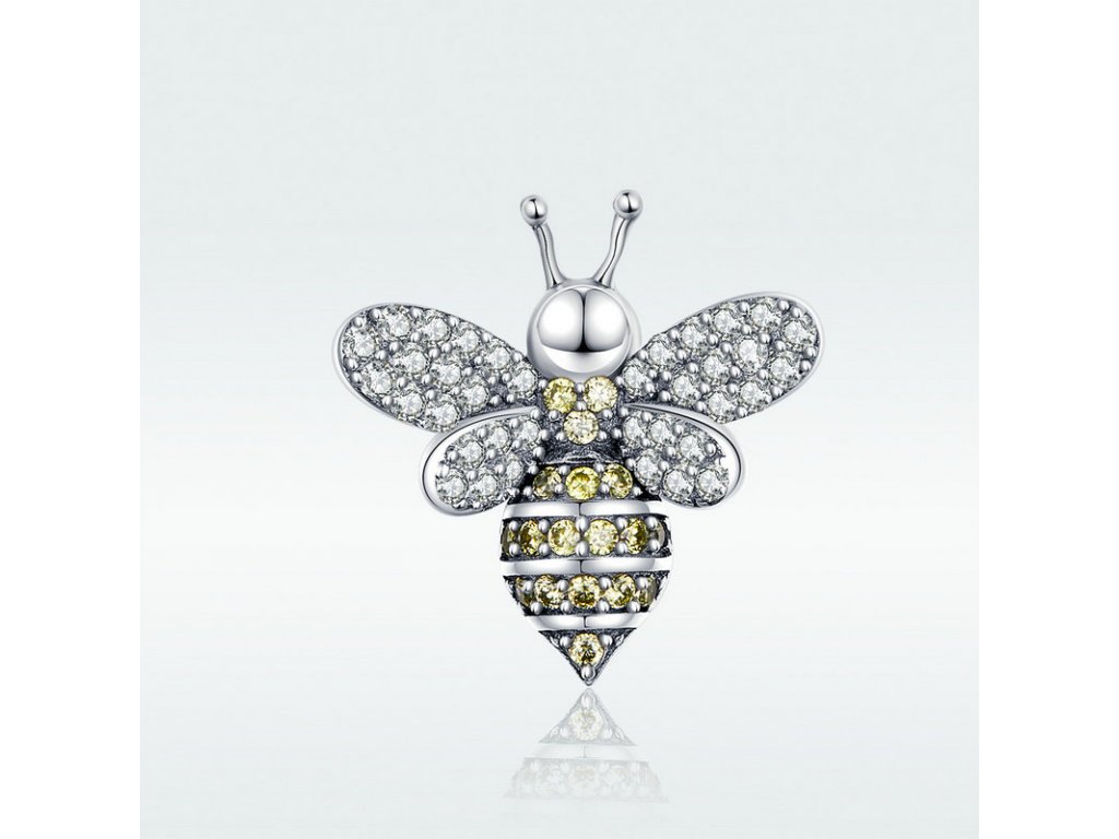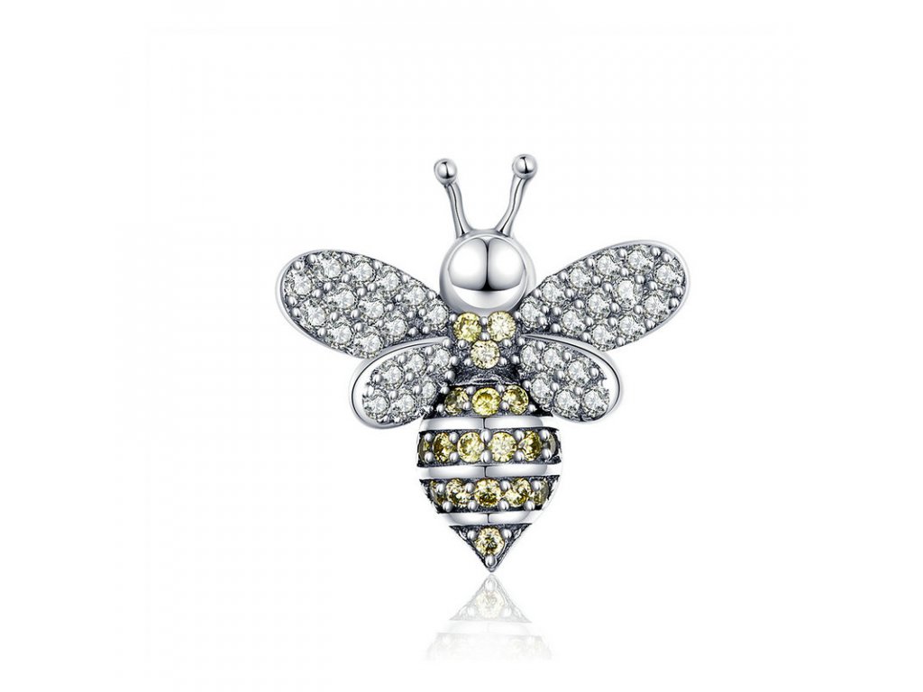 Stříbrný přívěsek v designu Včelí královny zdobené třpytivými čirými a zlatavými zirkony. Originální design přívěsku, kvalitní zpracování a materiál, ručně dohotovené.