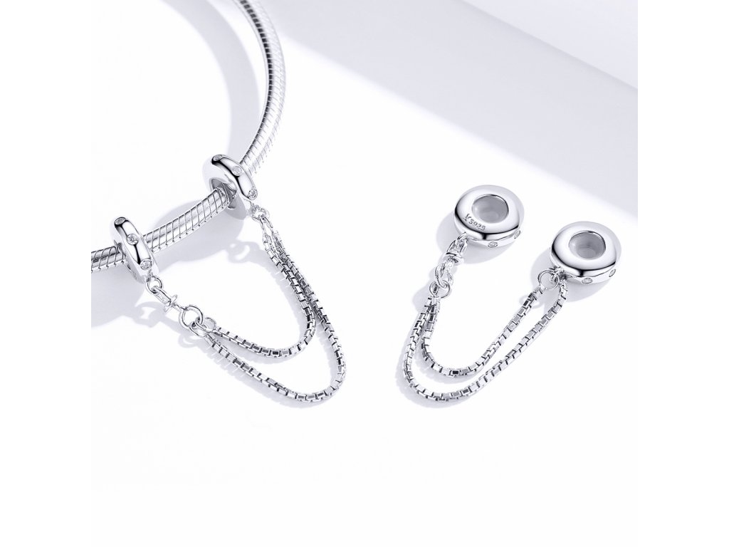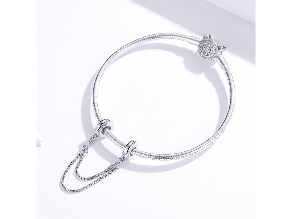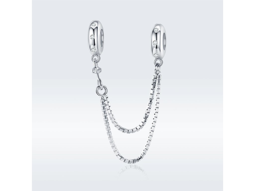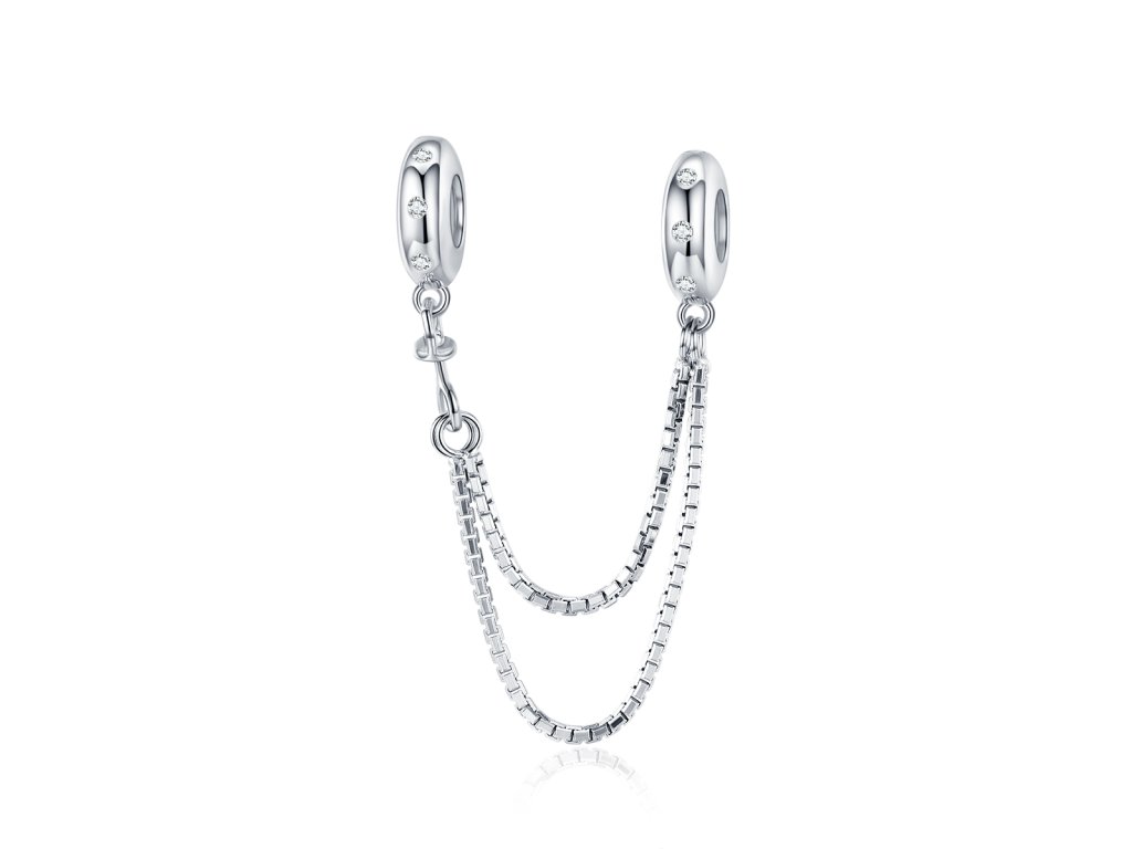 Stříbrný přívěsek Bezpečnostní řetízek Elegance na náramek zdobený čirými třpytivými zirkony. Originální design přívěsku, kvalitní zpracování a materiál, ručně dohotovené.