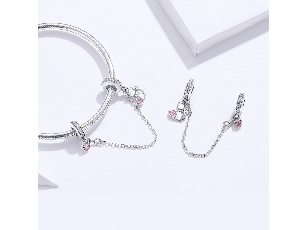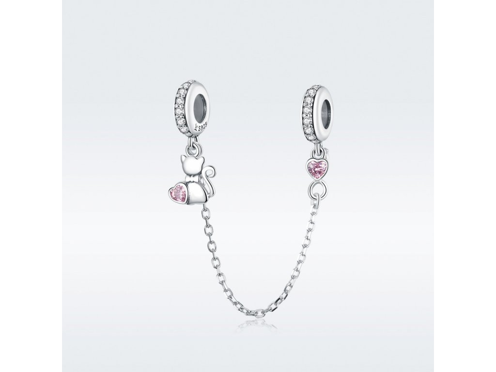 - Stříbrný přívěsek / bezpečnostní řetízek v designu Milované kočky zdobený růžovými a čirými třpytivými zirkony. Originální design přívěsku, kvalitní zpracování a materiál, ručně dohotovené.