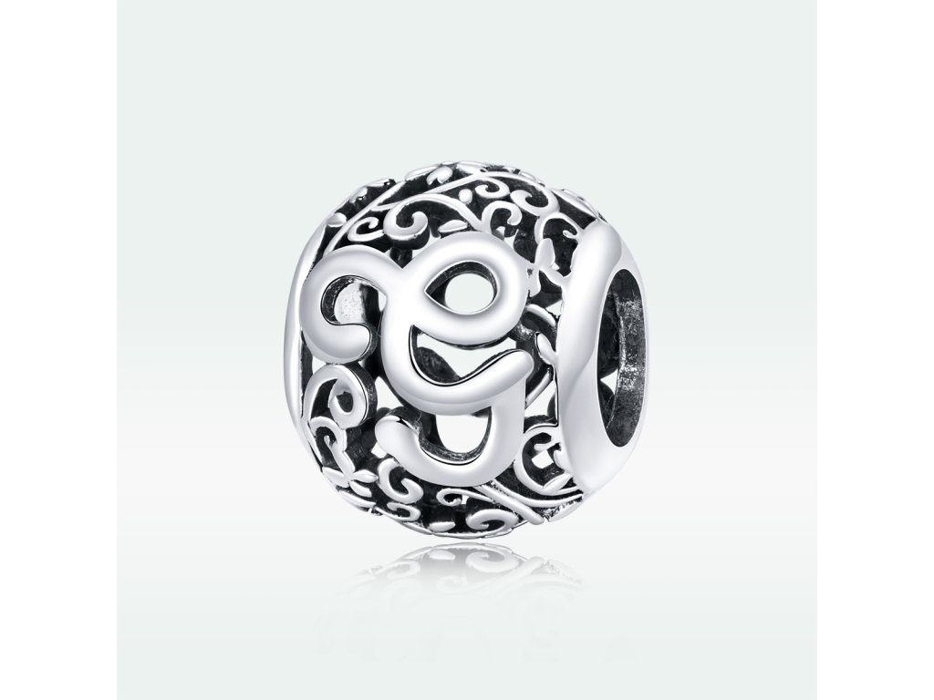 - Stříbrný filigránový přívěsek / korálek v designu písmenka G zdobený rozkvetlými květy a lístky.