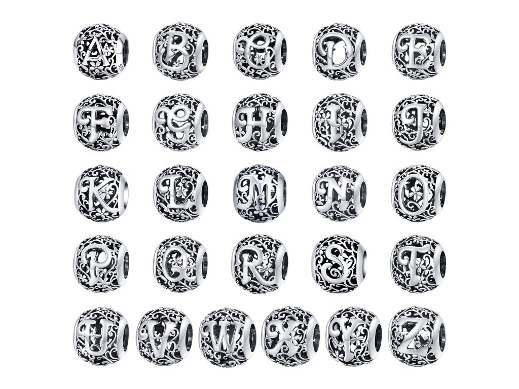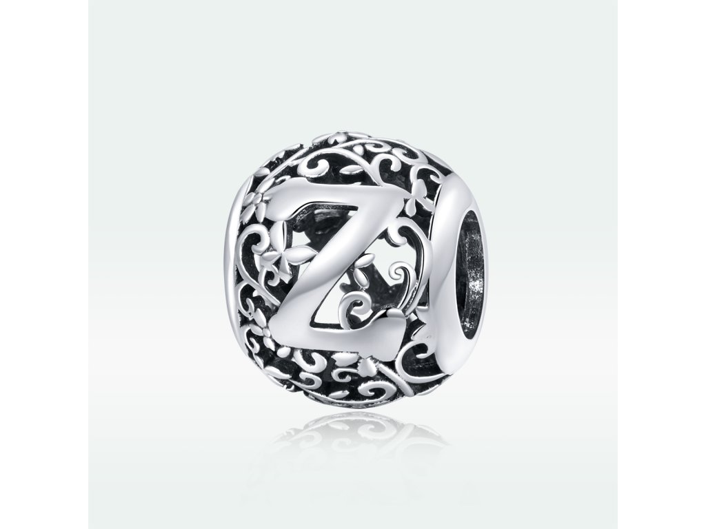 - Stříbrný filigránový přívěsek / korálek v designu písmenka Z zdobený rozkvetlými květy a lístky.