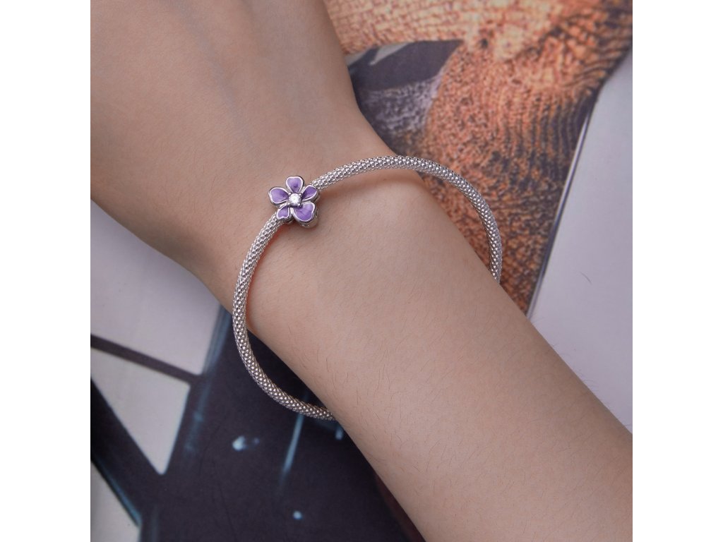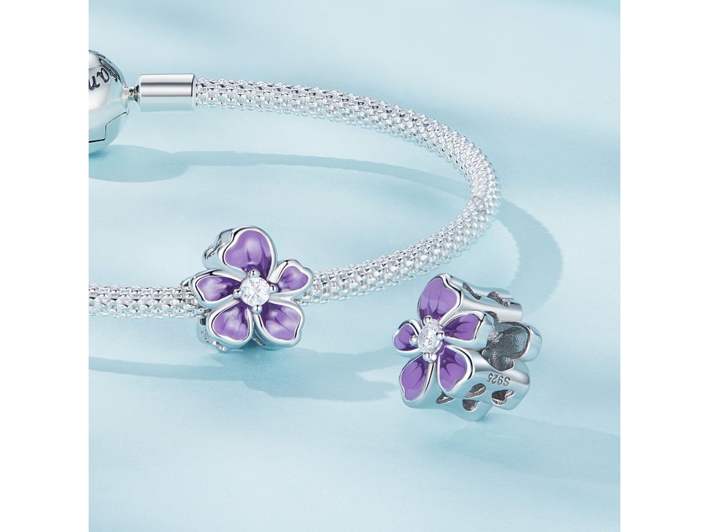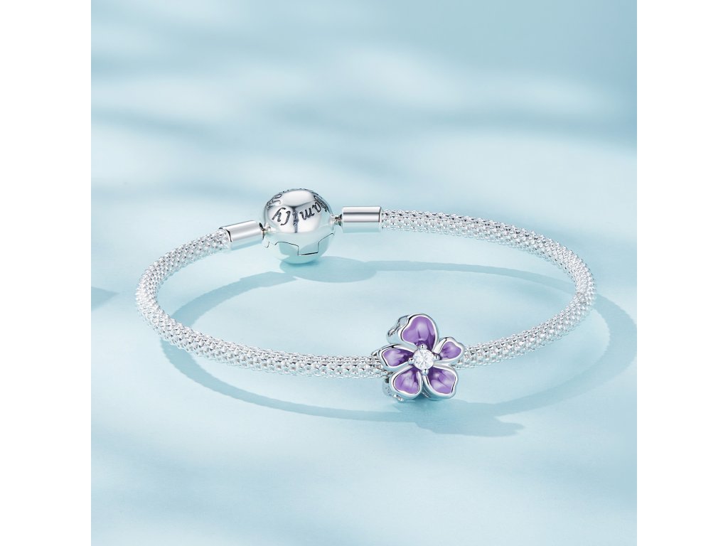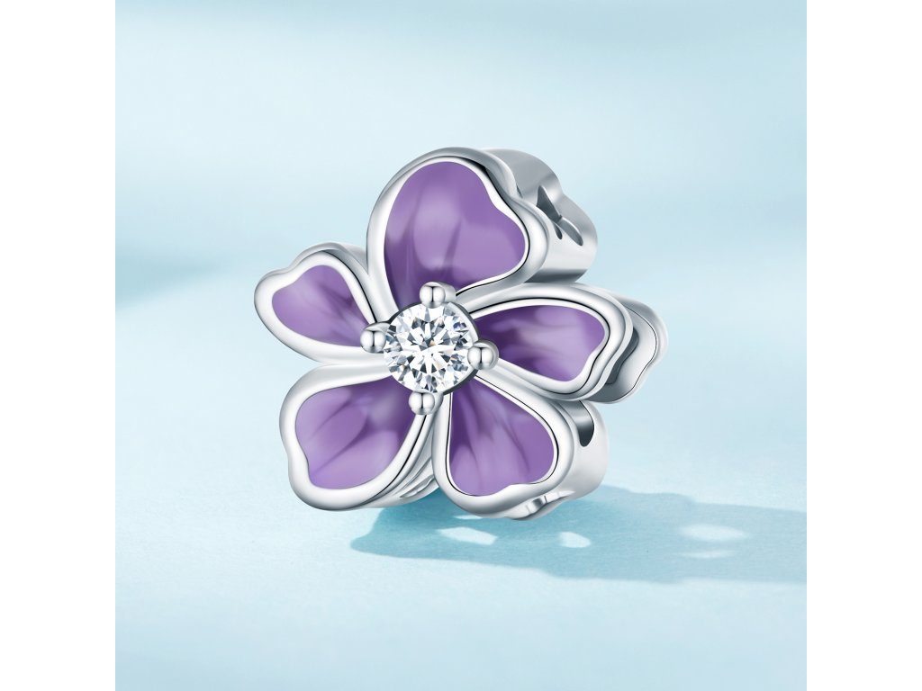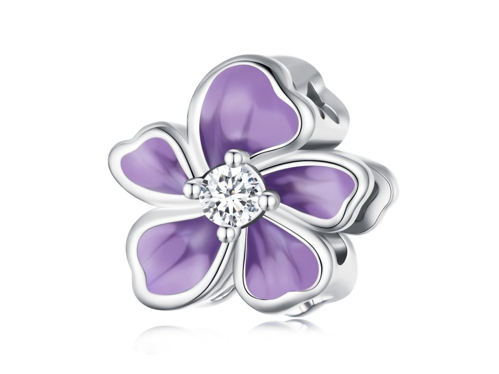 Tento stříbrný přívěsek je vyroben z materiálu s ryzostí 925. Přívěsek je navržen v designu fialové květiny se zirkonem umístěným uprostřed květiny. Zirkon dodává přívěsku zářivý lesk a vyniká proti fialové barvě květiny. Přívěsek je velmi elegantní a jemný, což je ideální pro ženy, které hledají doplněk, který je stylový a přesto subtilní.
