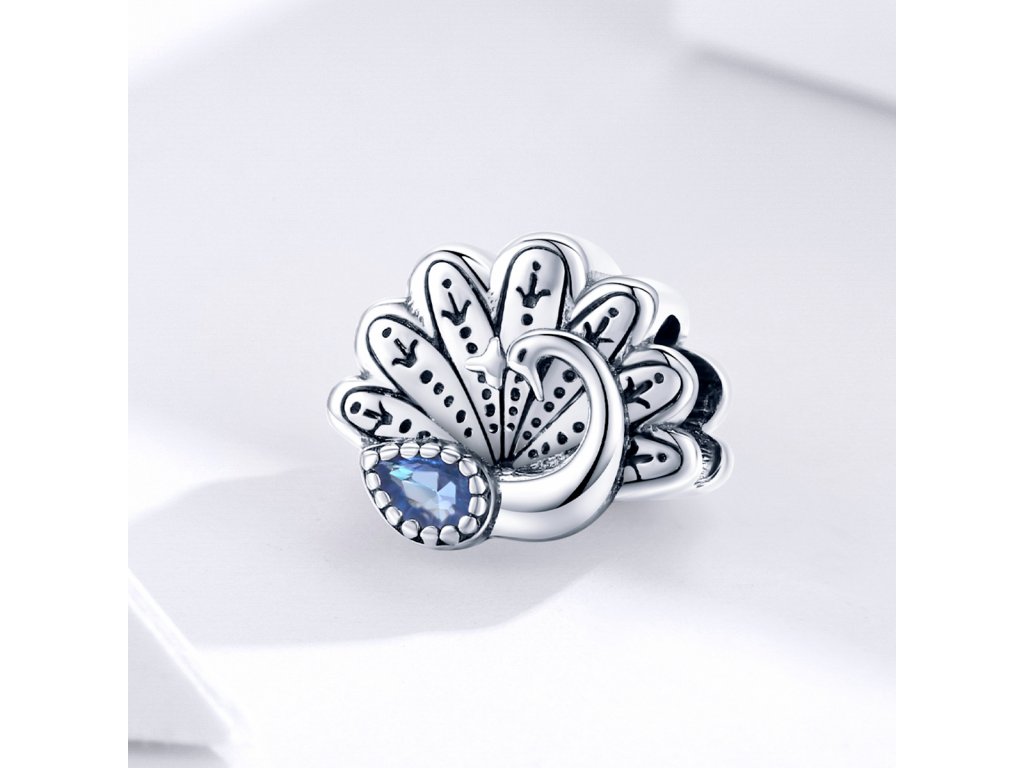 - Stříbrný přívěsek v designu Krásného páva zdobeného smaltem a modrým zirkonem. Originální design přívěsku, kvalitní zpracování a materiál, ručně dohotovené.