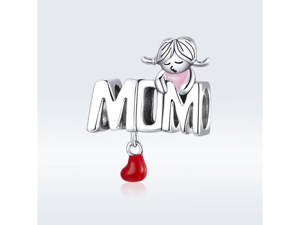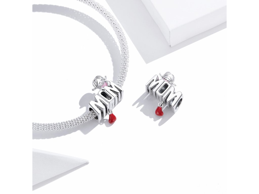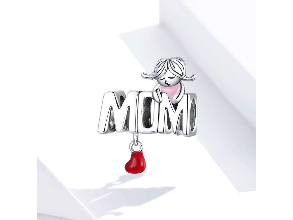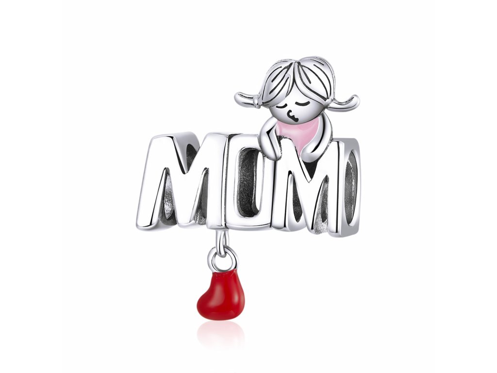 - Stříbrný přívěsek v designu anglického nápisu "MOM" v překladu "Maminka" zdobený ručně nanášenou červenou a růžovou glazurou. Originální design přívěsku, kvalitní zpracování a materiál, ručně dohotovené.