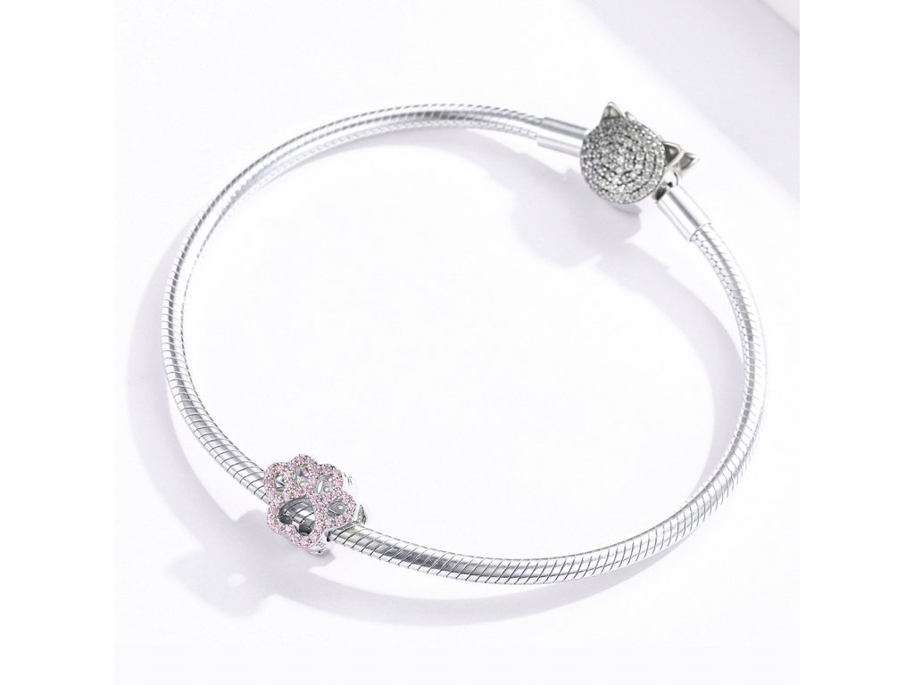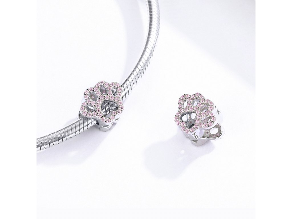 - Stříbrný přívěsek v designu Milované packy / tlapky zdobené světle růžovými třpytivými zirkony a vyřezávanými pacičky po stranách. Originální design přívěsku, kvalitní zpracování a materiál, ručně dohotovené.