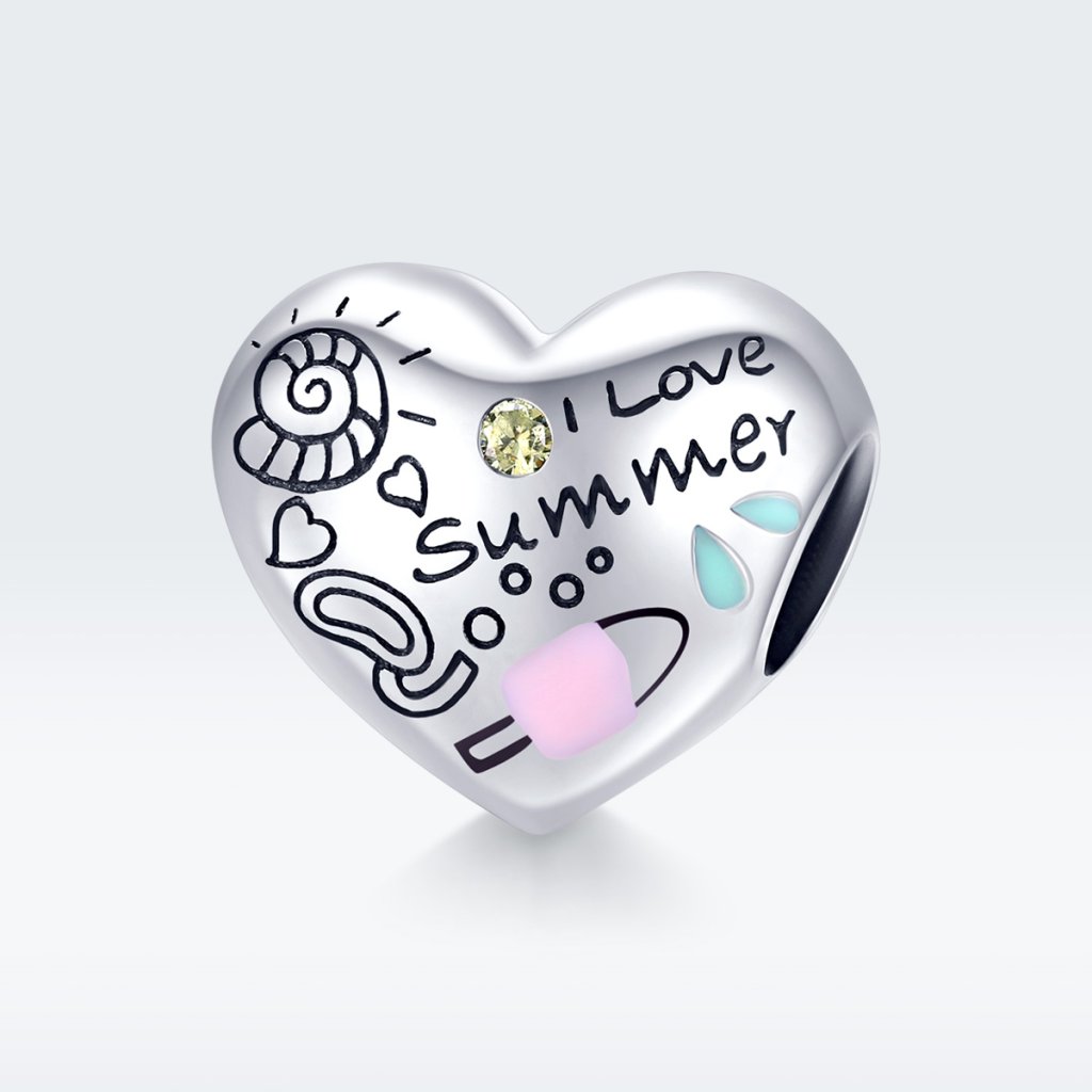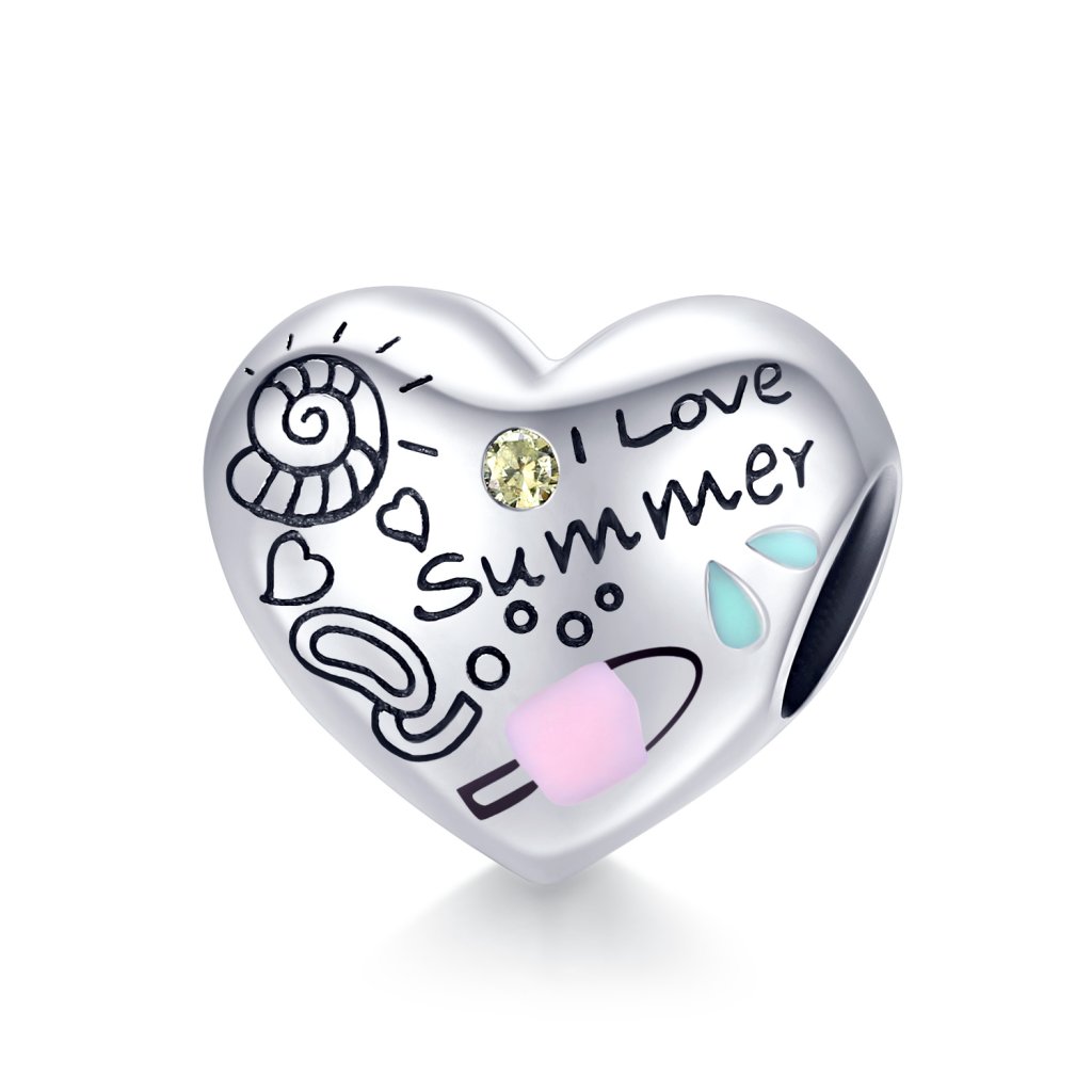 - Stříbrný přívěsek ve tvaru srdce a designu Milovaného léta zdobený smaltem, žlutým zirkonem a ručně nanášenou barevnou glazurou. Originální design přívěsku, kvalitní zpracování a materiál, ručně dohotovené.