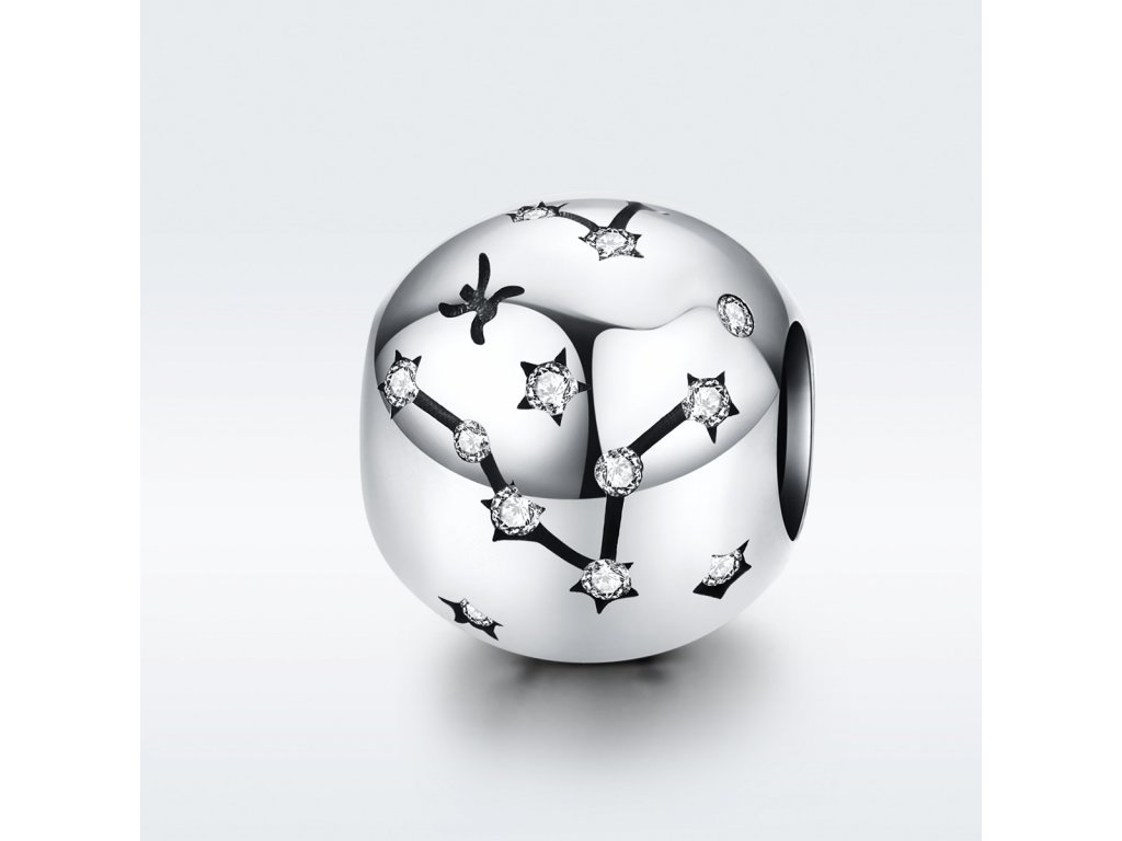 - Stříbrný přívěsek / korálek v designu Znamení zvěrokruhu Ryby zdobený čirými třpytivými zirkony. Originální design přívěsku, kvalitní zpracování a materiál, ručně dohotovené.