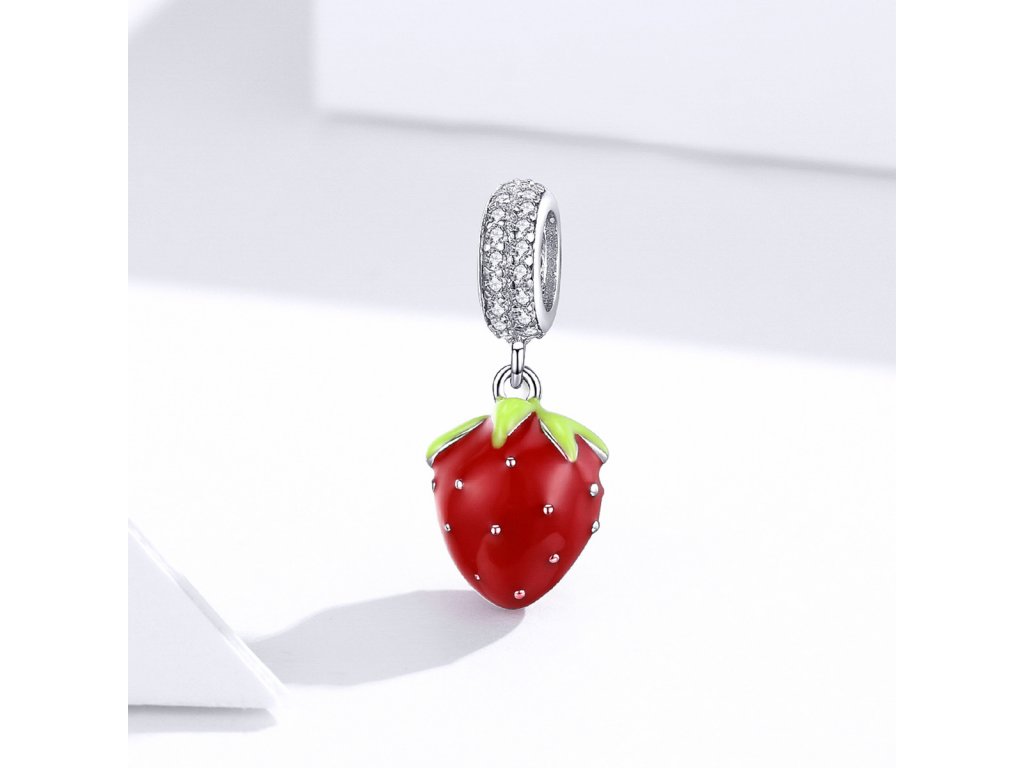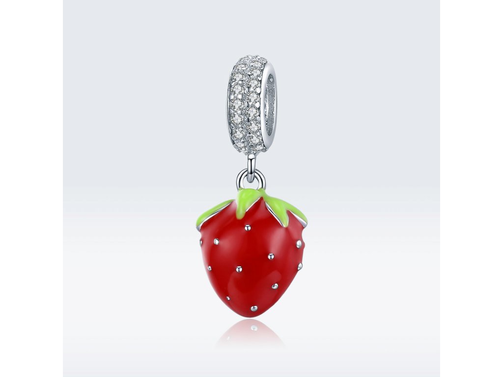 - Stříbrný visací přívěsek v designu Sladké jahůdky zdobený čirými kameny v podobě třpytivých zirkonů a ručně nanášenou červenou a zelenou glazurou Vám bude dělat chutě kdykoli se na něj jen podíváte. Originální design přívěsku, kvalitní zpracování a materiál, ručně dohotovené.