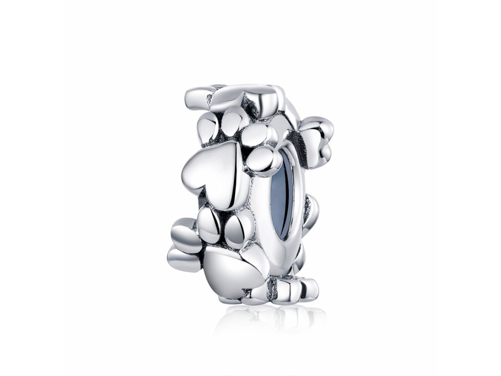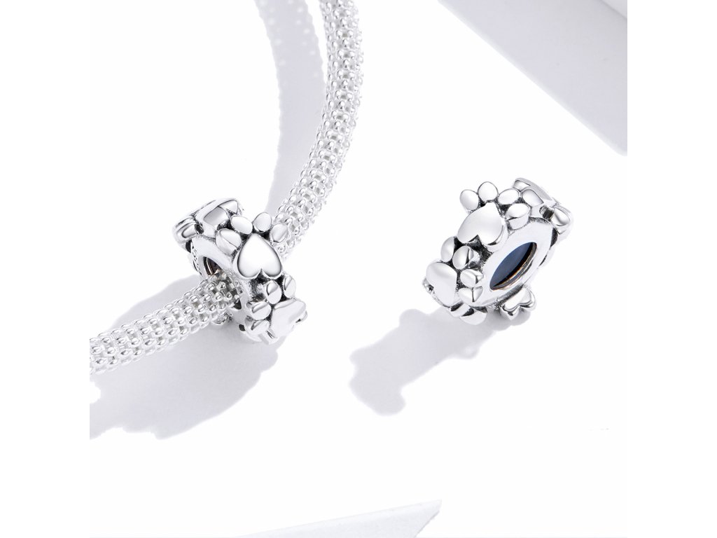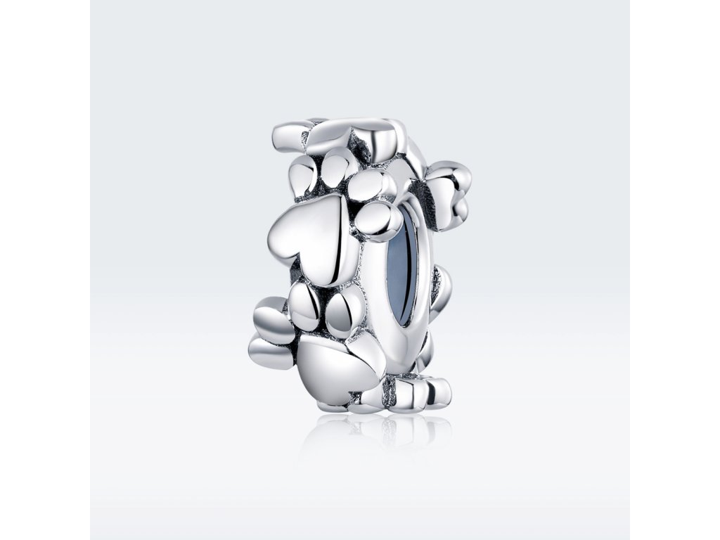 - Stříbrný přívěsek / spacer zdobený po celém svém obvodu drobnými pacičkami milovaného mazlíčka. Originální design přívěsku, kvalitní zpracování a materiál, ručně dohotovené.